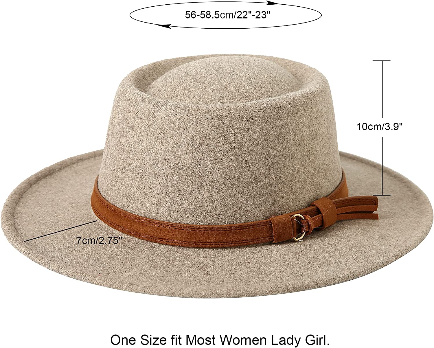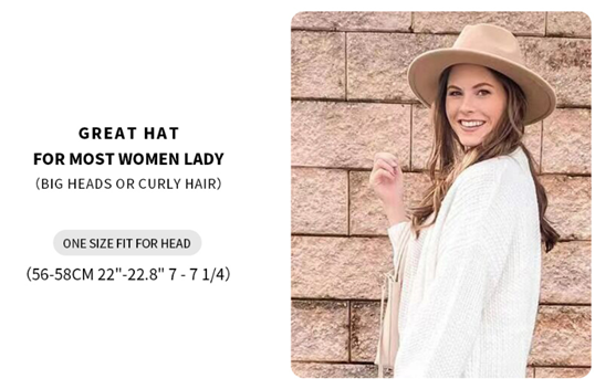 SIZE:One size fit all most women. Hat Circumference 22.6'',Fit 22"-22.8" 7 1/8-7 1/4 Size; Brim 2.9" 。