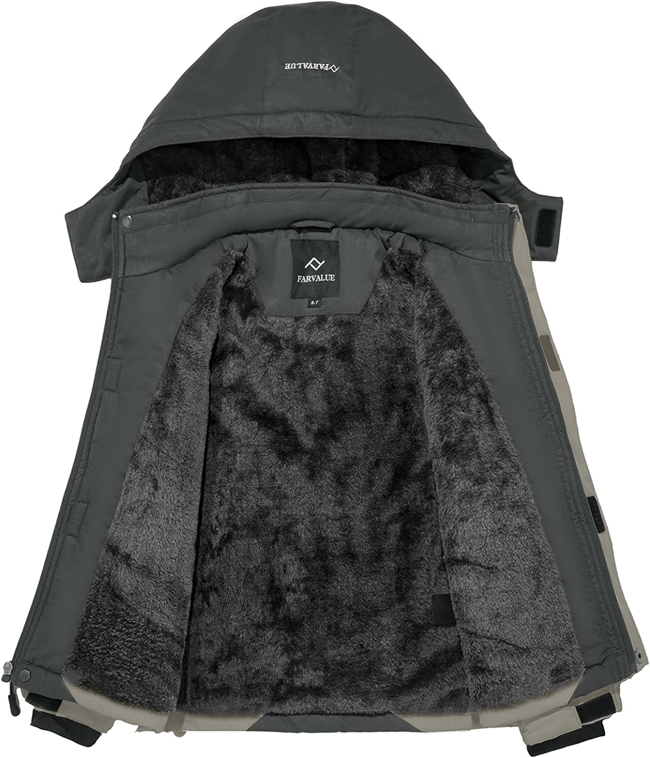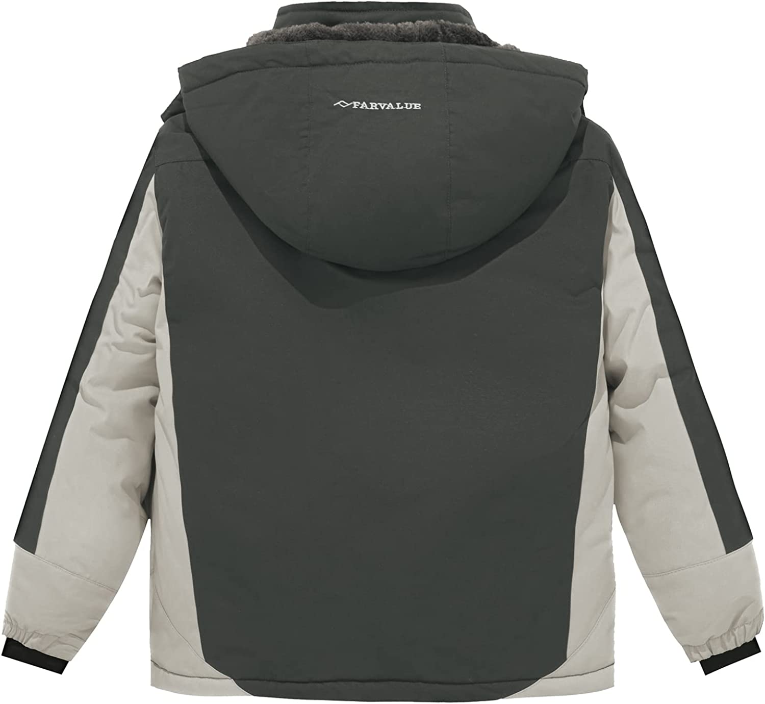 FARVALUE Boys Waterproof Ski Jacket Windproof Winter Coat Warm Snow Coat Outdoor Raincoats with Removable Hood