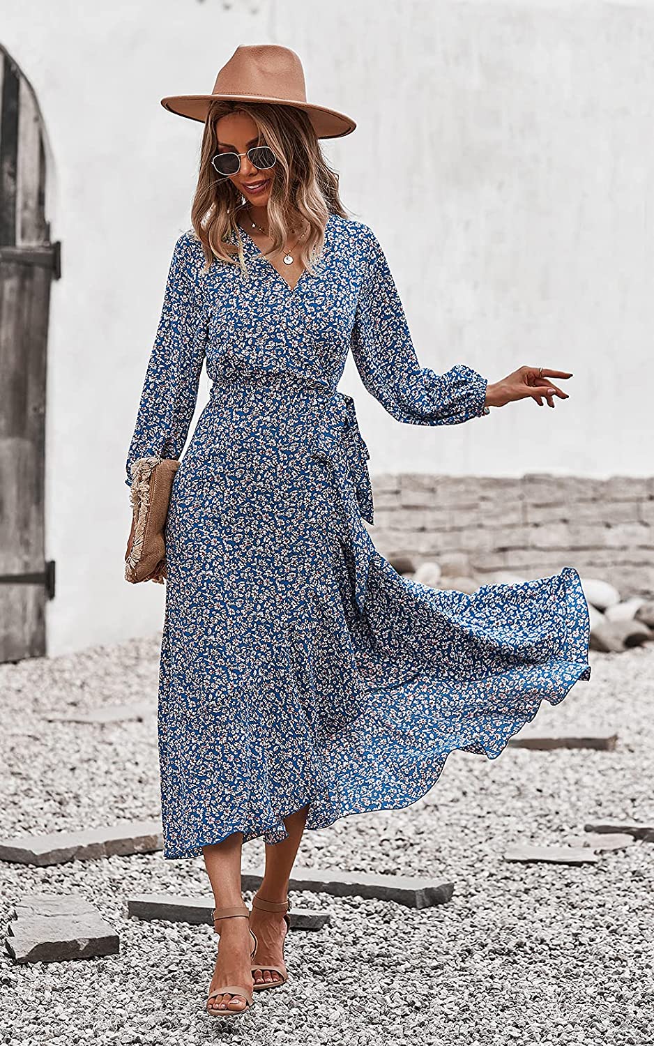 Material:This boho floral dress is made by lightweight and breathable Polyester fabric,more cool and comfy.The unique small floral design is casual and fashion,no matter what style you are,this is maxi dress will not let you down.