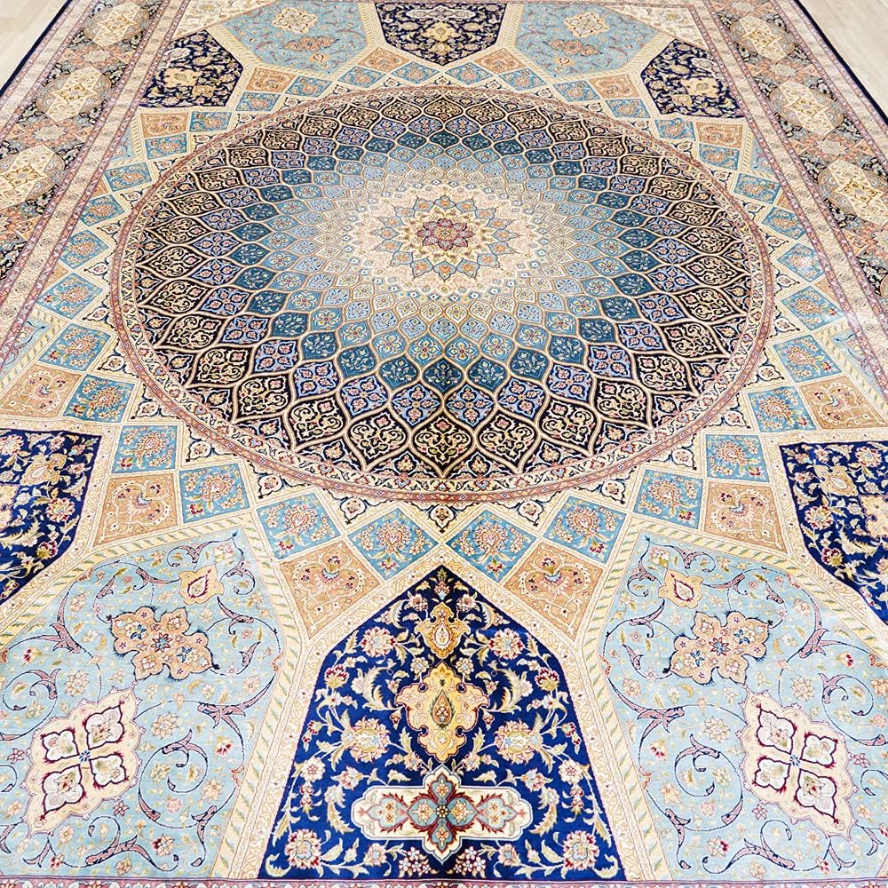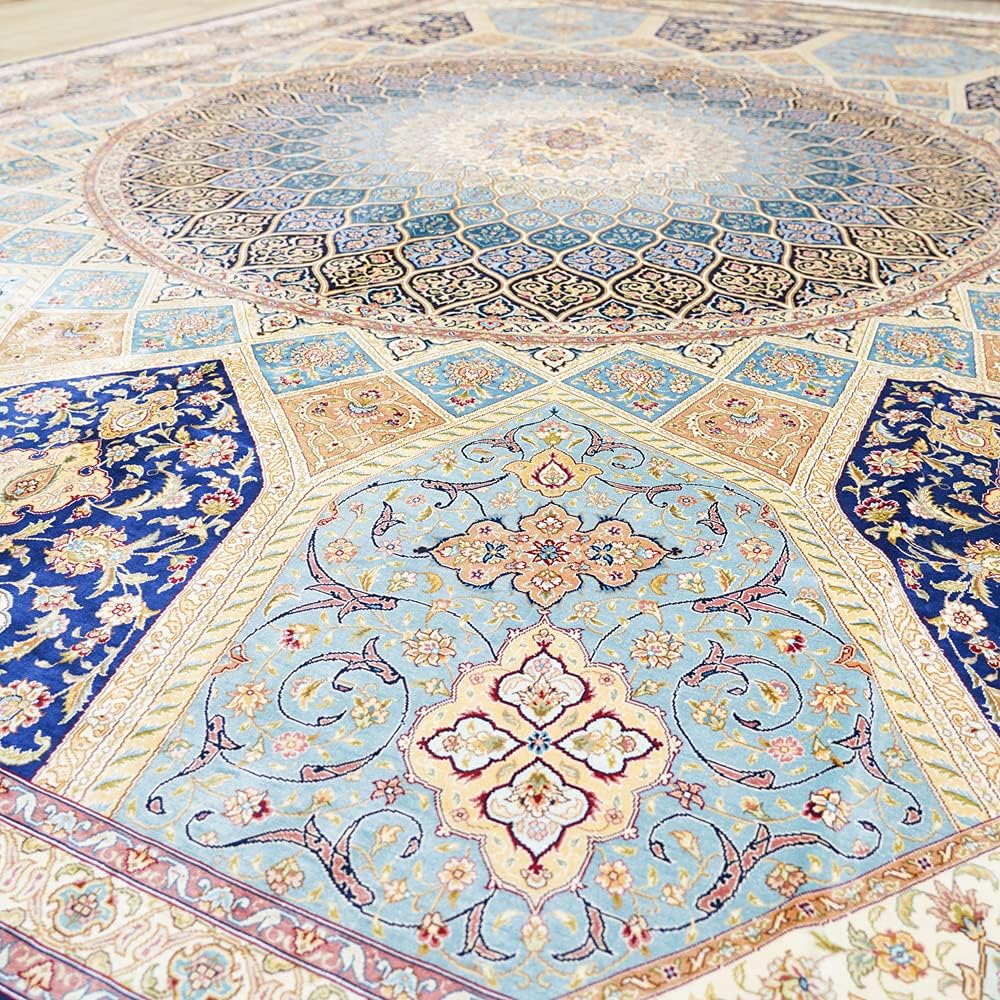 Yilong Silk Rugs Pure Handmade Carpet Large Dome Design Persian Rug Home Decor (10x14ft, Blue&Beige 11)