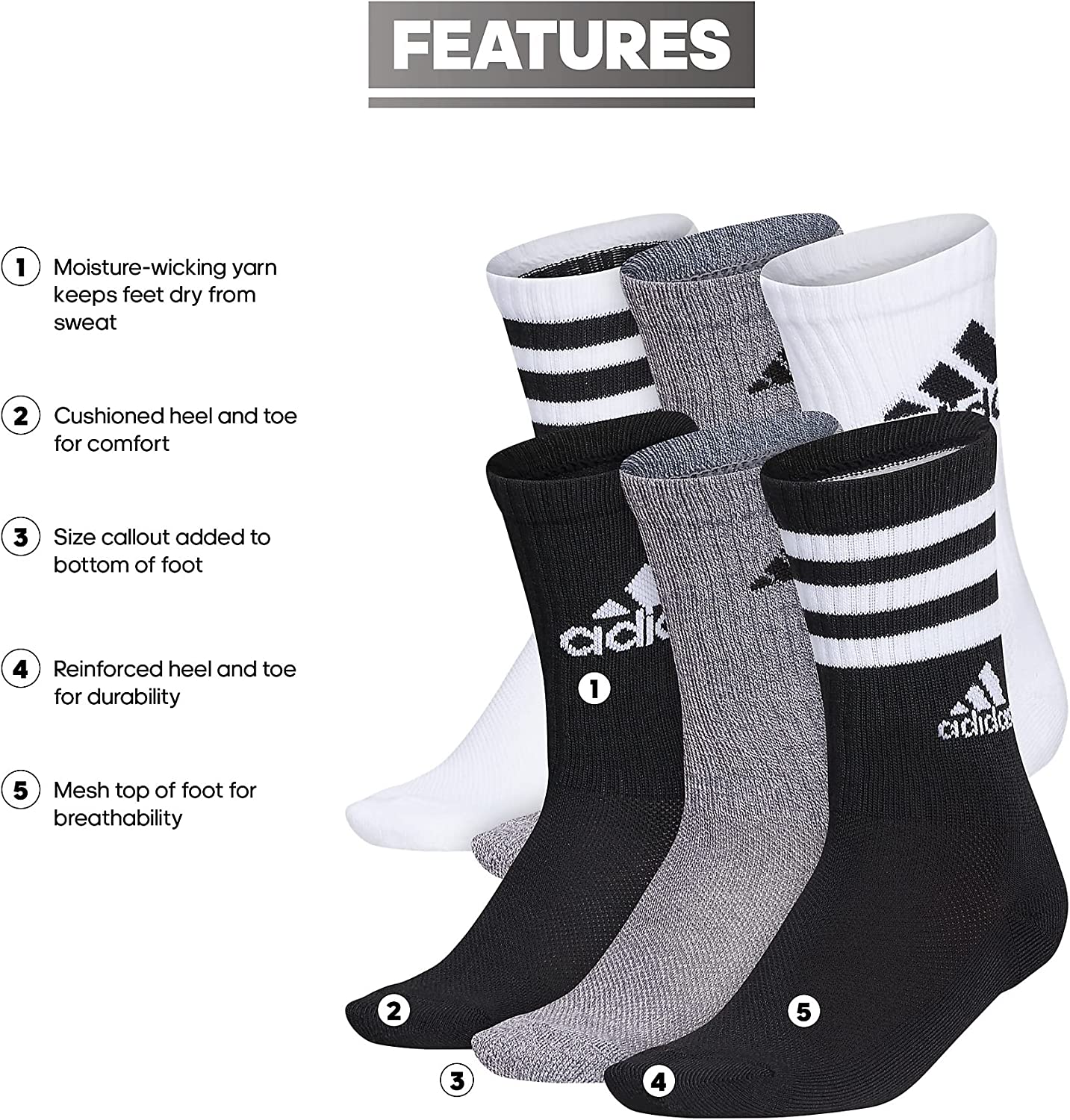 adidas Boys' Youth Cushioned Mixed 6-Pack Crew