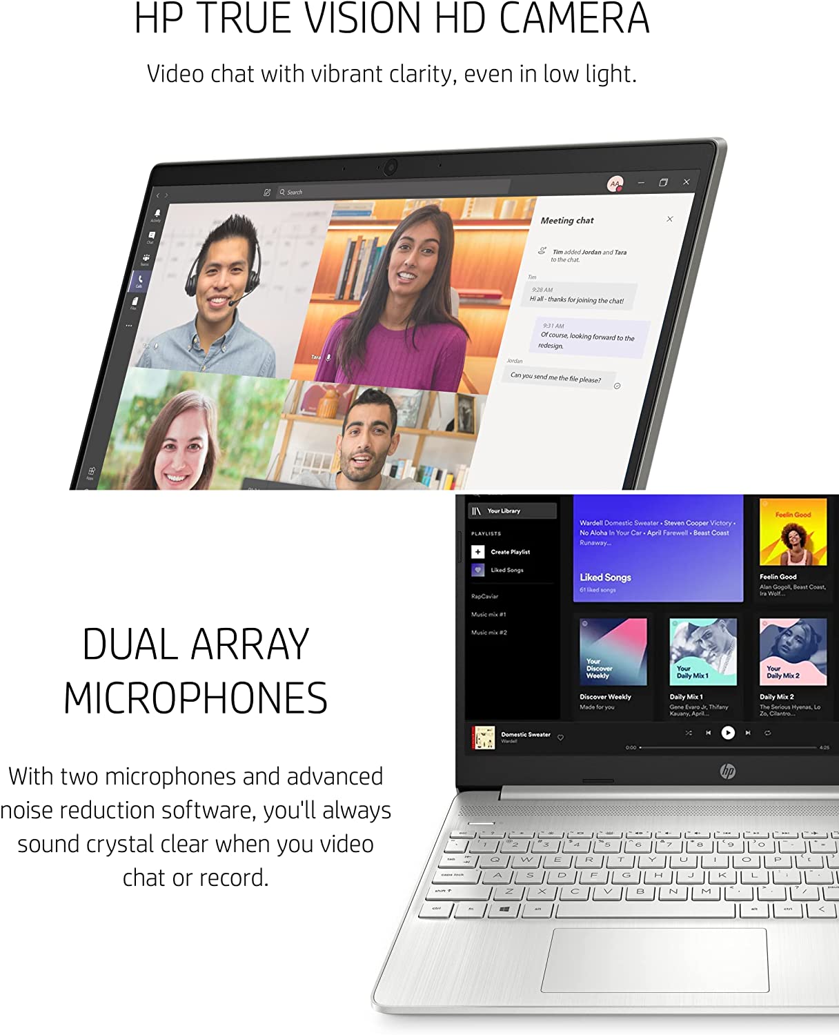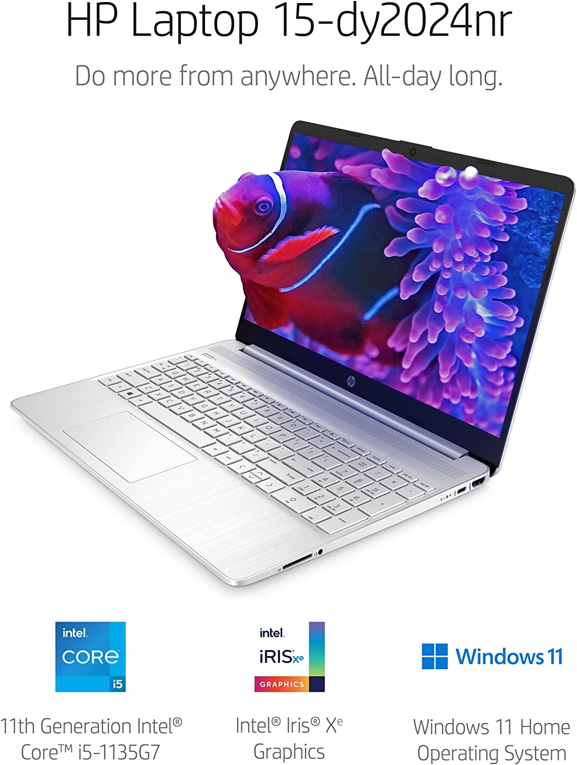 HP 15.6 Inch Laptop, Intel Iris Xe Graphics, 11th Generation Intel Core Processor, 8 GB RAM, 256 GB SSD, Windows 11 Home (15-dy2024nr, Natural silver)