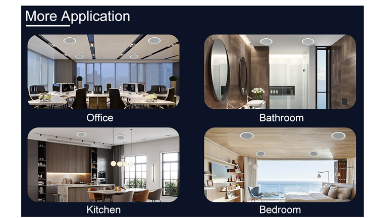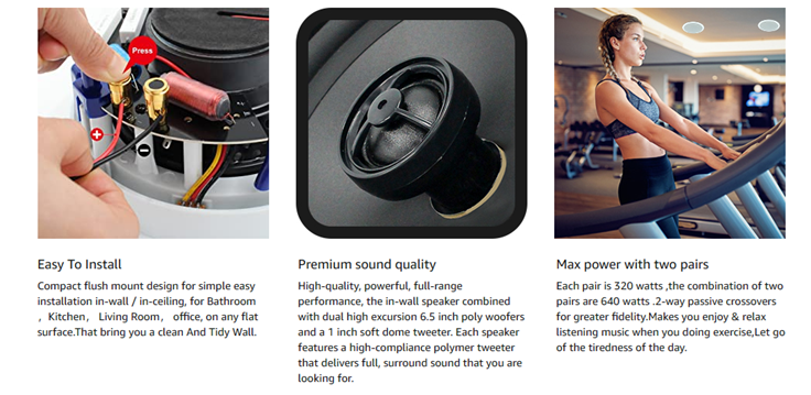 • 【Max Power 640 Watts】The max power of in ceiling speakers(4 speakers) up to 640 watts. It can achieve wide-ranged sound performance,even in a spacious office you can experience the stereo surround sound of the speakers .