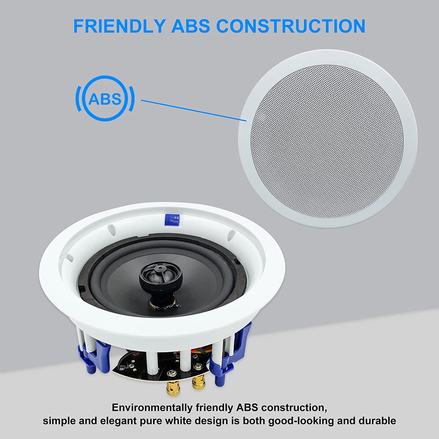 • 【Material and compatibility】The Ceiling Speaker Includes Environmentally Friendly ABS Construction And Durable Housings And Grills Can Be Painted To Match Your Home Design.It also can be used with your home amplifier box(Not include amplifier box).