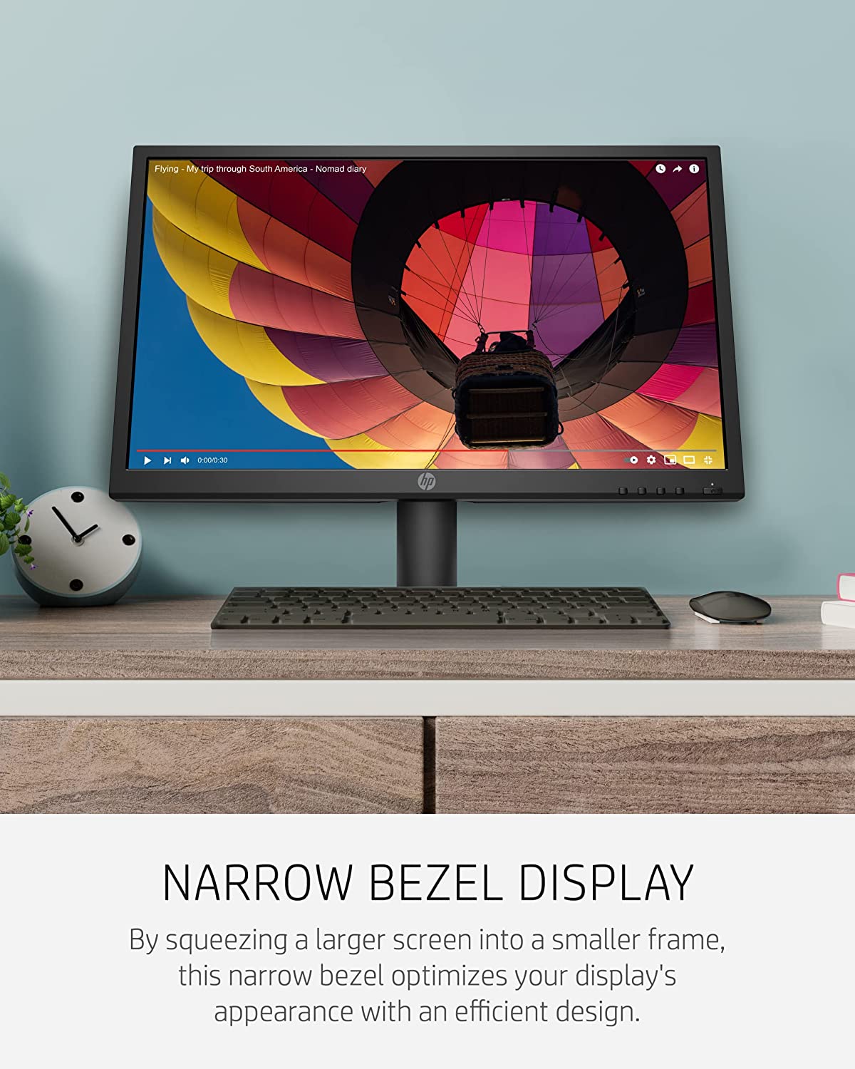 • NARROW BEZEL DESIGN – Optimized for both looks and efficiency, your monitor's narrow bezel lets you enjoy more of your screen.