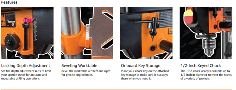 | Included Components | 2.3-Amp 8-Inch 5-Speed Benchtop Drill Press |