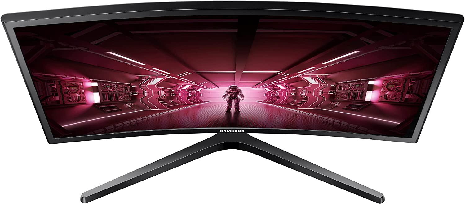Samsung CRG5 Curved Gaming Monitor allows gamers to get fully immersed in with the1800R curved screen. No matter what you are playing, get the feeling of being pulled in as your game's world wraps around you, and enjoy smooth and clear action every moment. A refresh rate of up to 144Hz puts you ahead, even in the most demanding games. Spot the enemy instantly and notice tiny crucial changes in every scene. Get ideal settings for your game with exclusive gaming features. Game Mode optimally adjusts black gamma levels, contrast, sharpness, and color for any game genre. Low Input Lag Mode minimizes delays between your input devices and display. Virtual Aim Point centers the target on the screen for more precise attacks on the enemy. No more choppy gameplay. AMD Radeon FreeSync™ eliminates image tears for exceptionally smooth, fast-action gaming. With a dynamically adapted display refresh rate, even the most complex game scenes are seamless and virtually stutter-free. Play for even longer. Eye Saver Mode minimizes blue light enough to keep eyes relaxed and comfortable when gaming for extended periods. Flicker Free technology continuously removes tiring and irritating screen flicker so you can focus longer with less distraction or eye strain. Give them nowhere to hide. A whopping 3000:1 contrast ratio lets you see dangerous objects or enemies with greater clarity. Blacks are deeper and whites are brighter with more levels of shades in between. Even when enemies hide in the dark, you can spot them quickly, before it's too late.