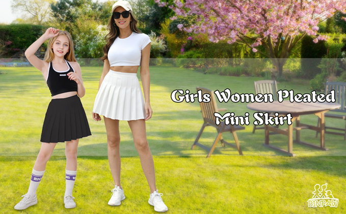 BINPAW Girls Women Pleated Skirt School Uniform Mini Tennis Skirts
