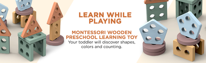 - ? AWESOME GIFT FOR A SPECIAL CHILD - If you are looking for an amazing gift for toddlers then you will love our montessori preschool stacking toy. With various multi-play features, the little ones can build it, stack it and thread it, learn shapes and colors from circle to triangle and red to blue or simply build random objects and patterns - a great way to bring a big smile on your child’s face!