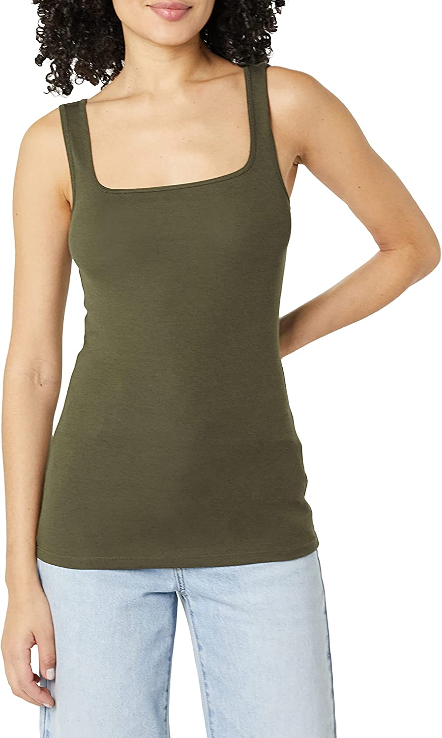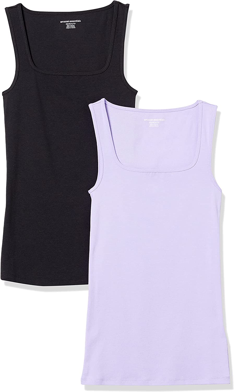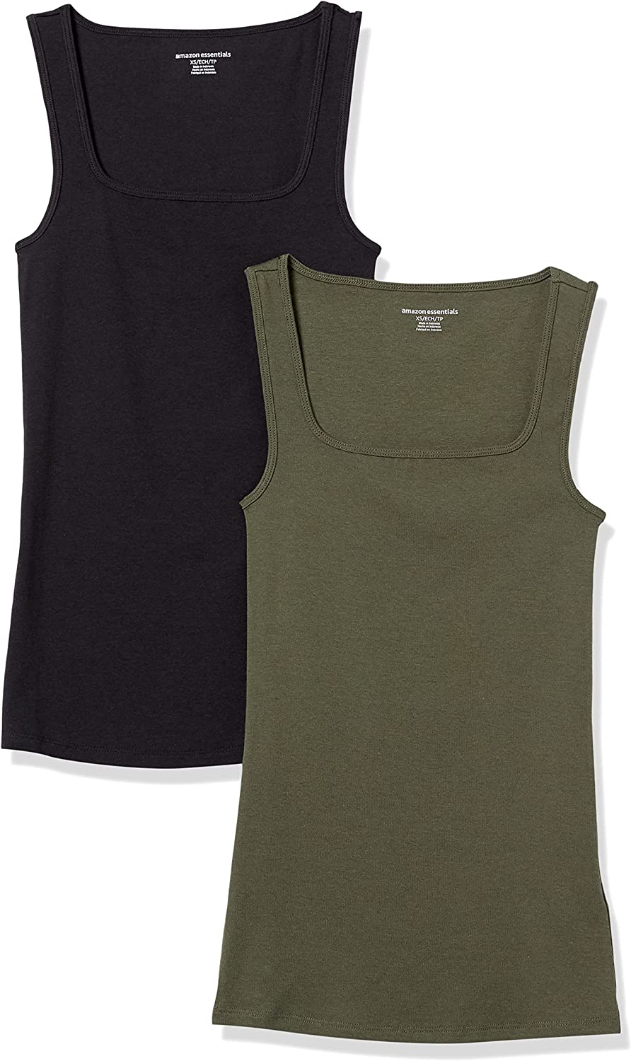 Amazon Essentials Women's Slim Fit Square Neck Tank, Pack of 2