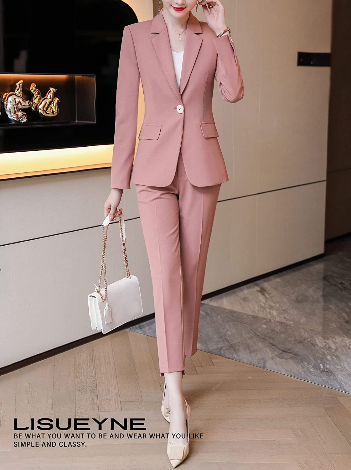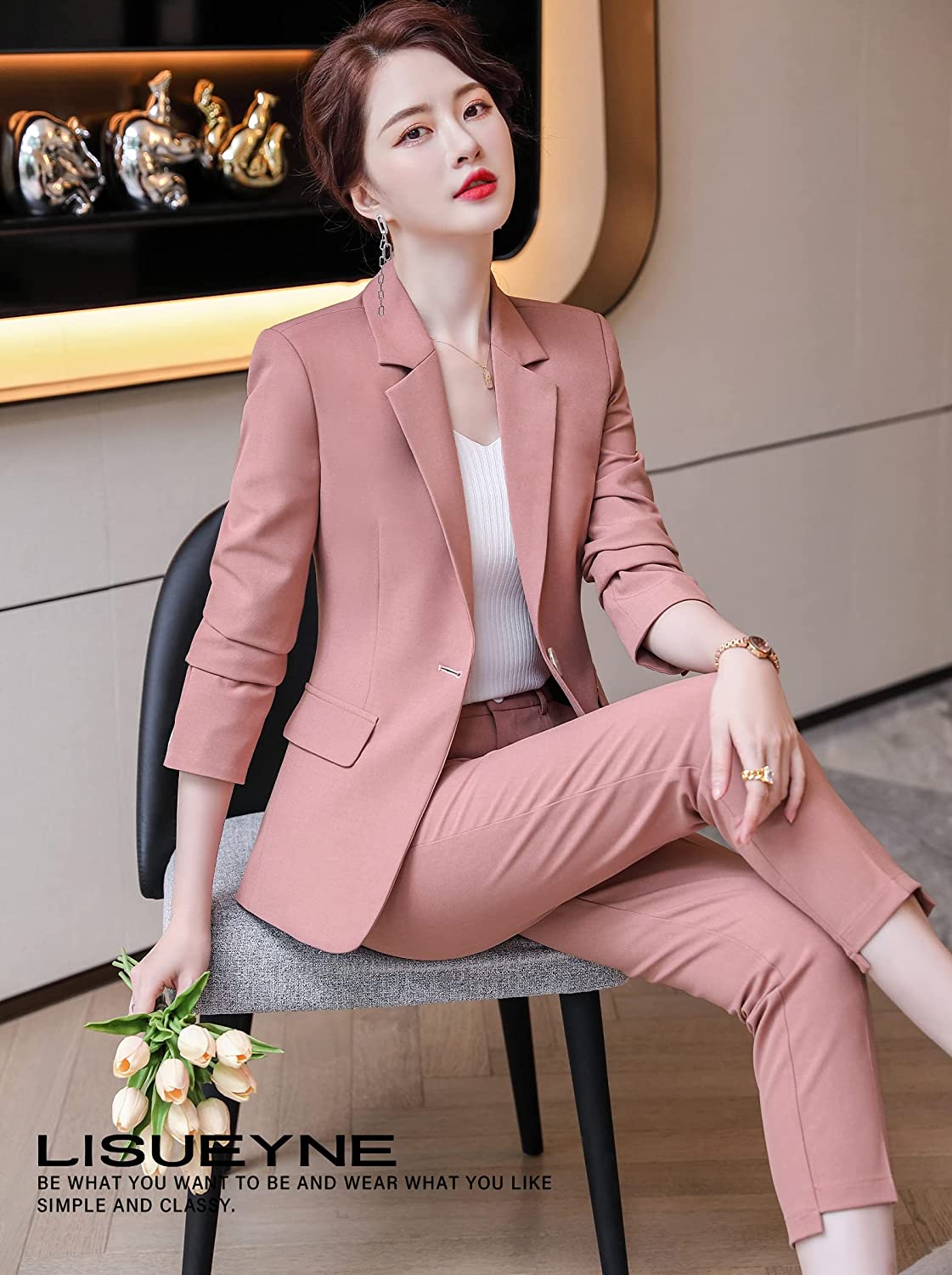 LISUEYNE Women’s Two Pieces Blazer Office Lady Suit Set Work Blazer Jacket and Pant