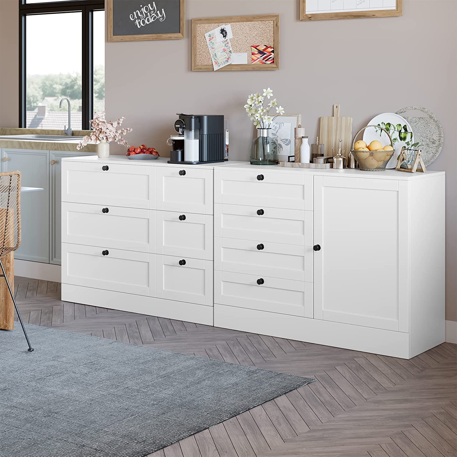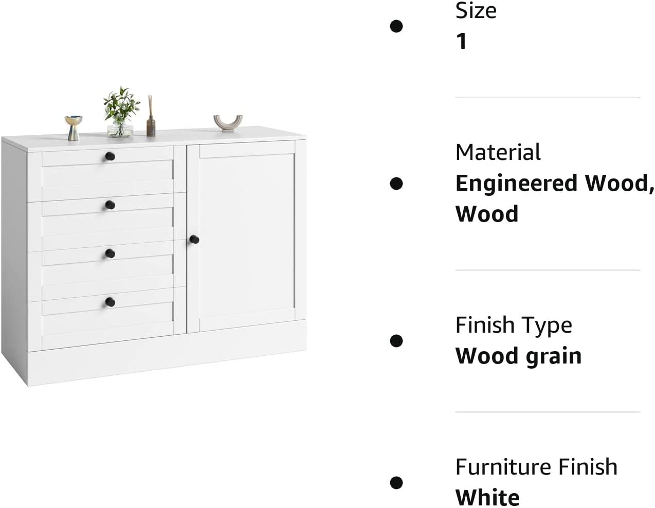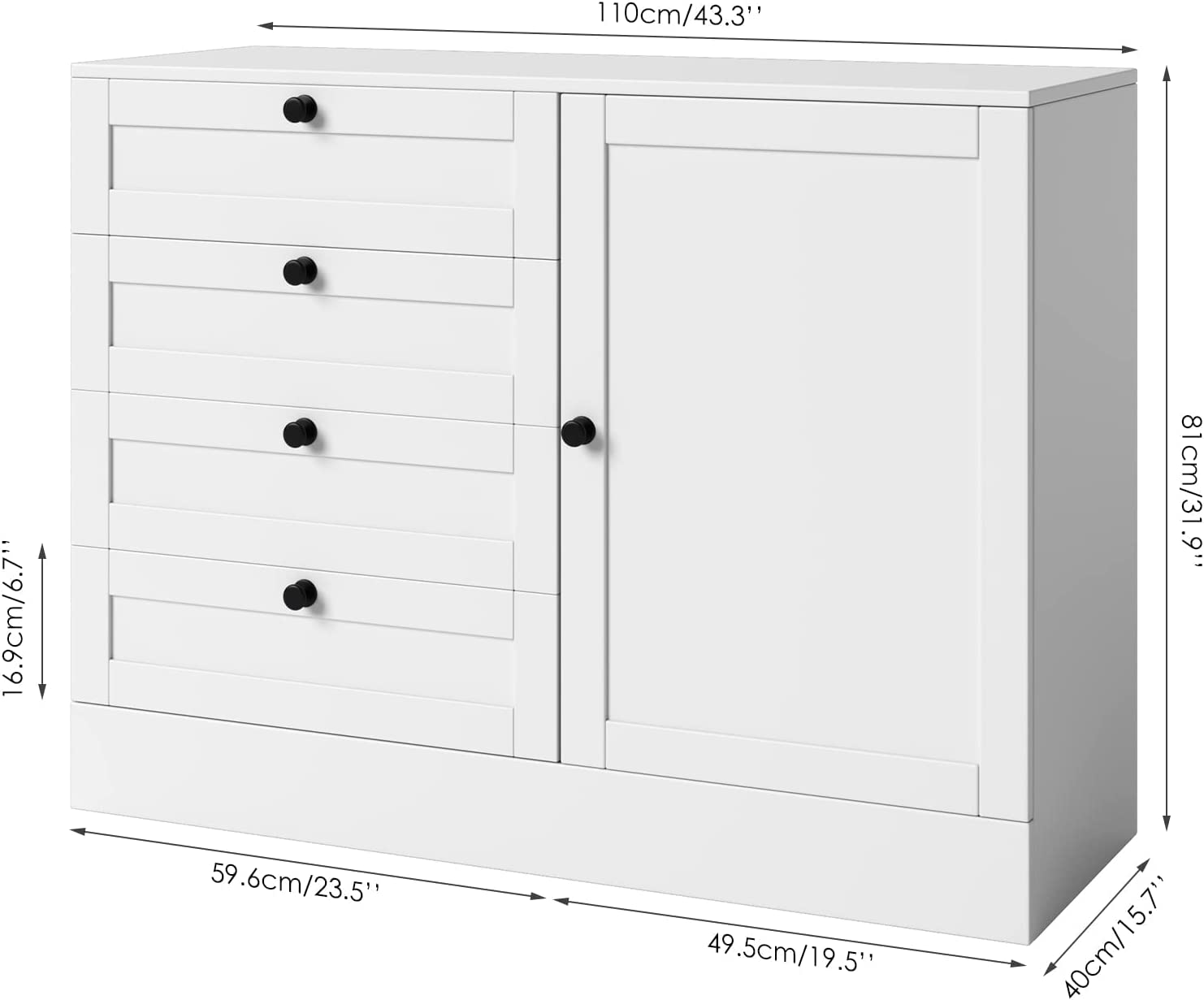 • Ample Storage Capacity: Equipped with 4 equal-sized pull-out drawers as well as 2 large compartments behind the door, this storage cabinet with doors and drawers is able to fulfill all your desires for clothes, books, or tableware with such sufficient storage options