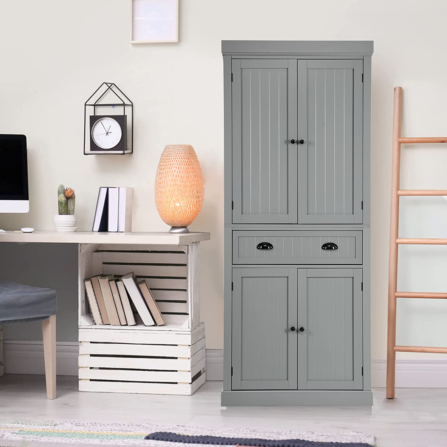 ⭐【72” x 30” x 16” Large Cupboard Cabinet】Measuring 72” x 30” x 16”, the practical storage cabinet offers you large storage space to display whatever you want. With its elegant design, you can place the pantry cabinet in your kitchen for seasoning bottles and dishes, bedroom for clothes, living room for books, as well as bathroom for towels.