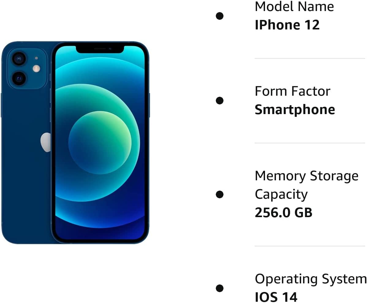 Apple iPhone 12, 256GB, Blue - Unlocked (Renewed Premium)