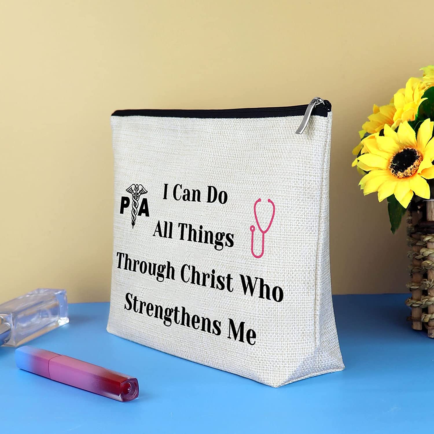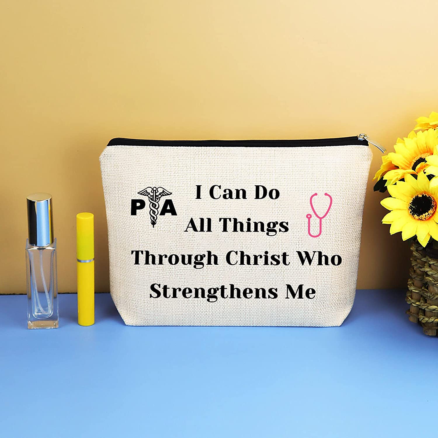 • Physician Assistant Gift:Cosmetic Pouch Gift - I Can Do All Things Through Christ Who Strengthens Me PA.This is an inspirational words from the Bible Verse expresses a powerful spiritual strength and perseverance.A nice gift to encourage your favorite Physician Assistant.