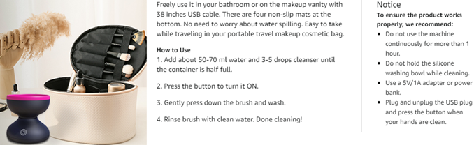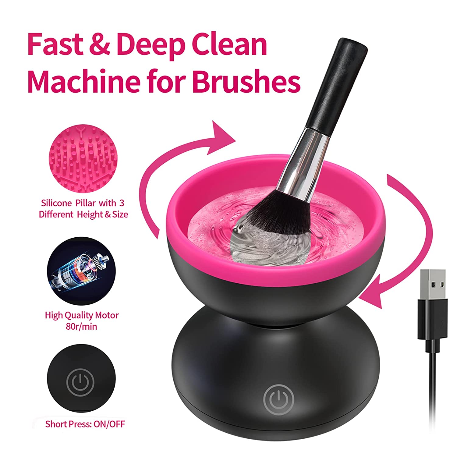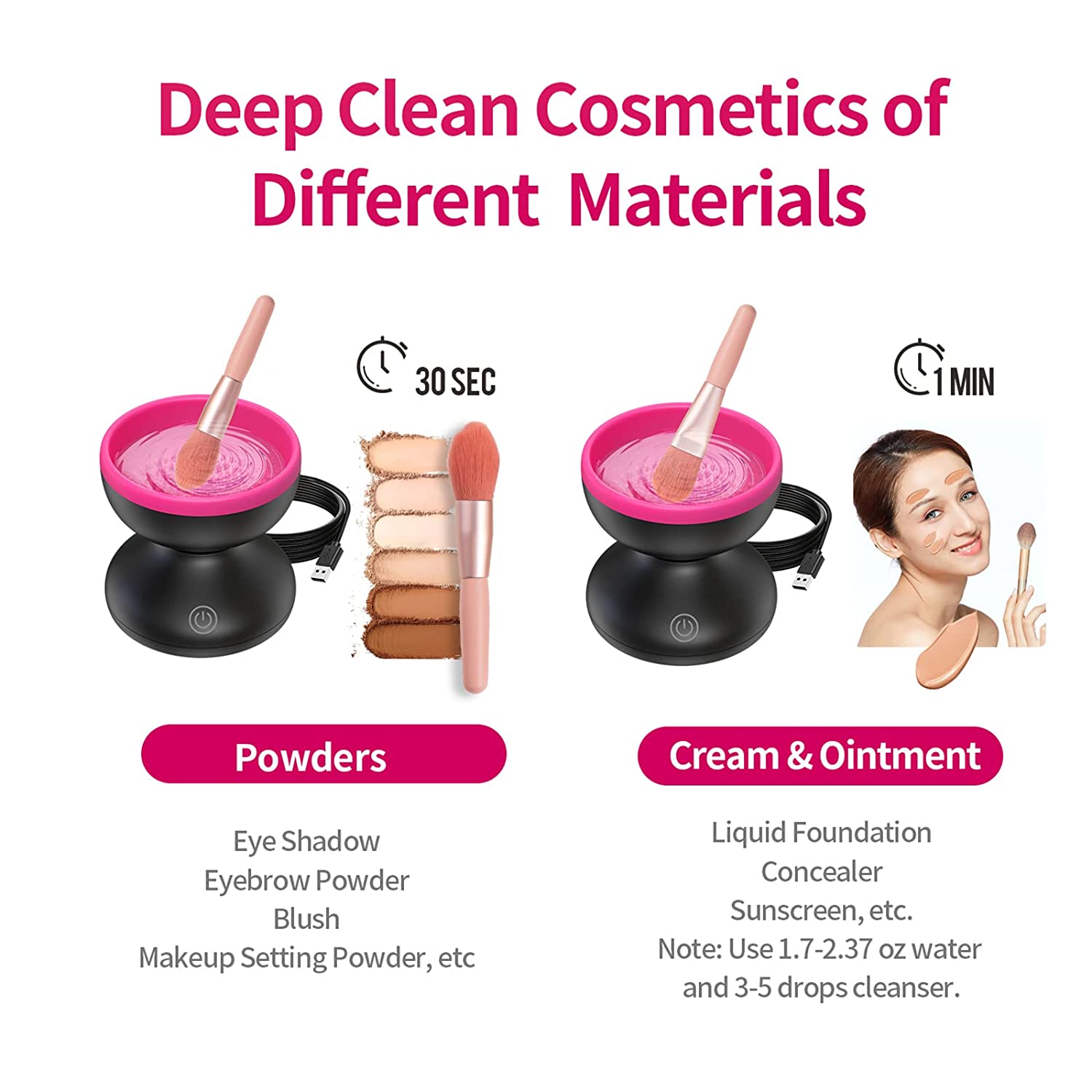 • 【USB Powered & Easy to Use】USB powered electric makeup brush cleaner machine can directly clean your makeup brush set. No assembly is required and one button to clean, which is easy to operate.