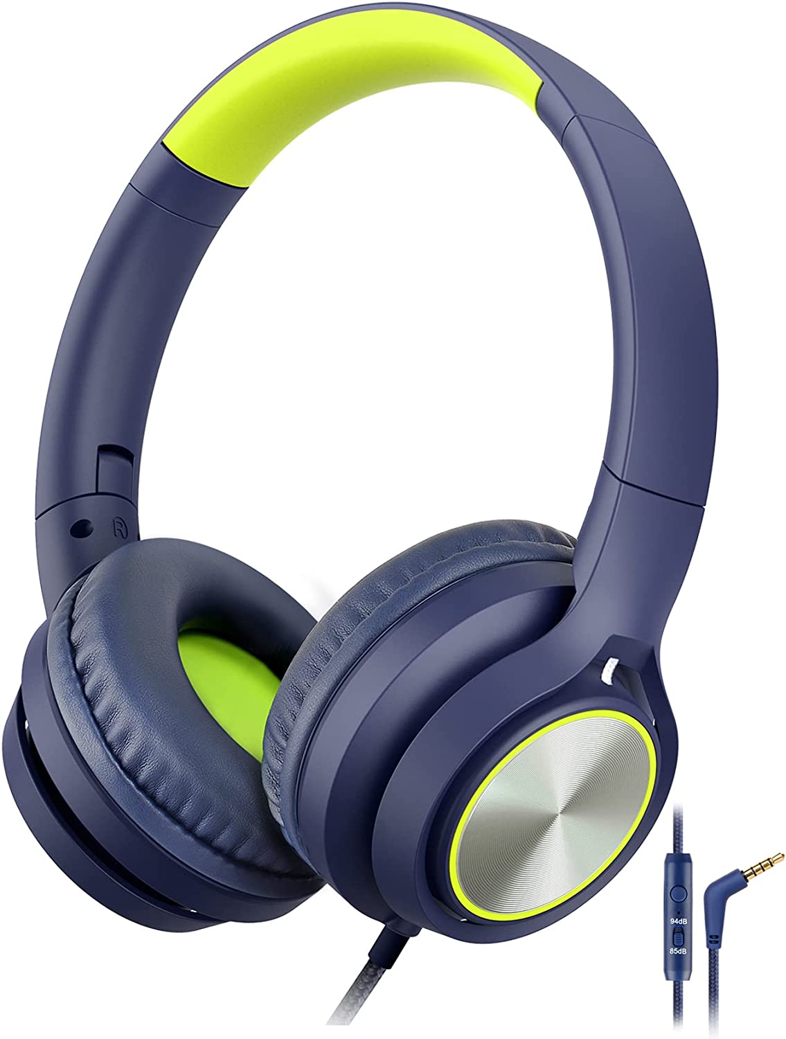 Kids Headphones with Microphone, Wired Over Ear Headsets with Limited Volume 85dB/ 94dB for Boys Girls Teens Children Online School/Travel/iPad/Tablet/Cellphone