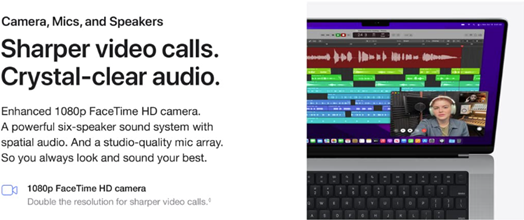 1080p FaceTime HD camera with advanced image signal processor for sharper video calls