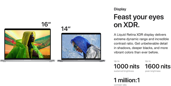 Stunning 16-inch Liquid Retina XDR display with extreme dynamic range and contrast ratio