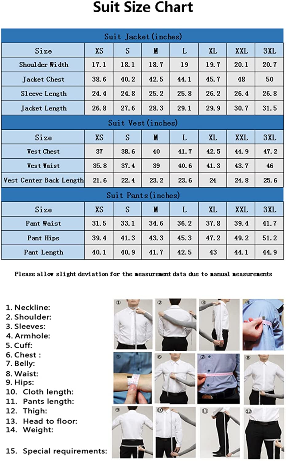 Occasions:This tuxedo/suit set is suitable for multiple occasions,such as weddings ,business meetings,fashion shows, parties,prom,daily life,homecoming and back to school,any fashion forward parties,any holiday,work and other Formal Occasions.Good Gift Choice for your Father,Brother,Boyfriend or your Friends.