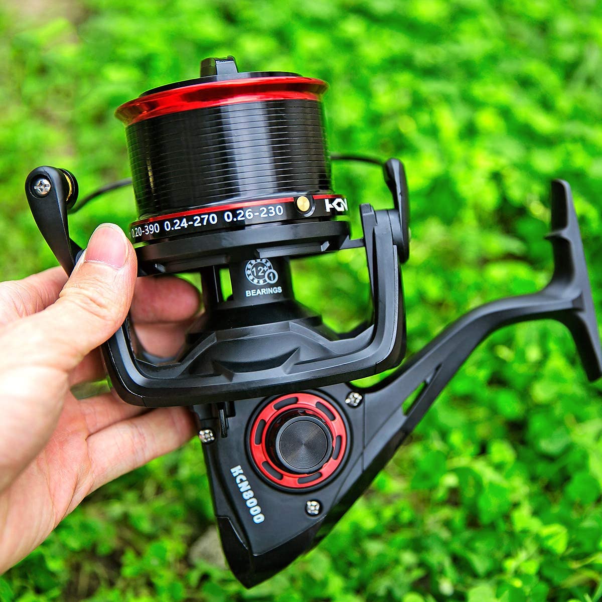 • PURE POWER: You will love KCN spinning reel's amazing best-in-class up to 70 LBS / 31 KG of smooth, reliable triple disc aluminum alloy, oversized stainless steel main shaft, and stronger precision mesh manganese brass pinion gears for more fishing muscle.