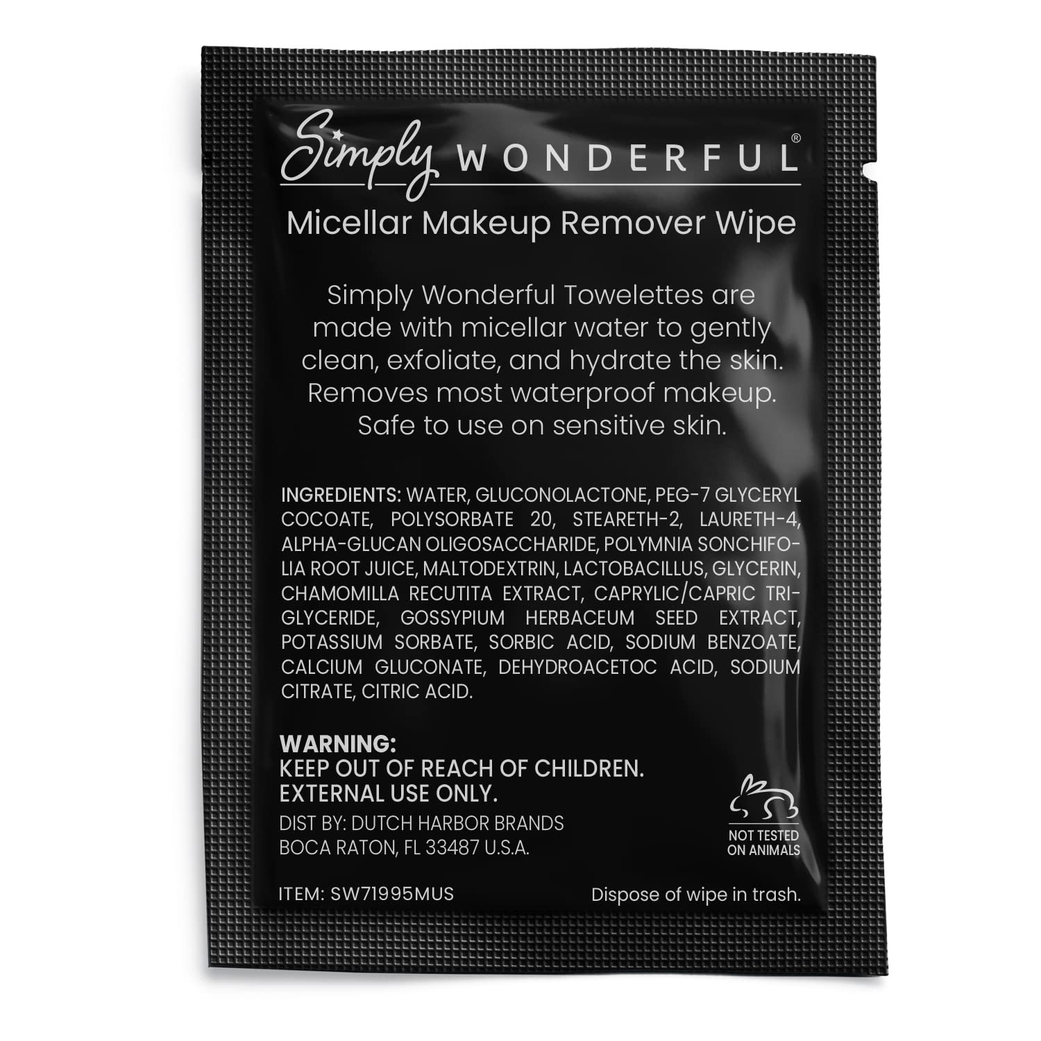 • TRAVEL MAKEUP REMOVER - Great for individual use for salon makeup artists, spas or after special events. Simply Wonderful bulk makeup remover wipes make great mini gifts for women, a girls weekend trip or bridal party favor.