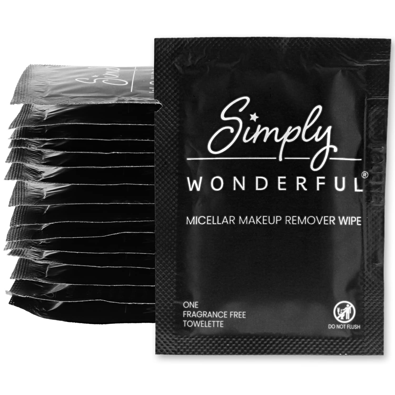 Simply Wonderful Makeup Remover Wipes - Individually Wrapped Makeup Wipes with Micellar Water Makeup Remover for Facial Wipes Cleansing, Remove Makeup, Mascara, Lipstick, Oil and Dirt, 100 Bulk Makeup