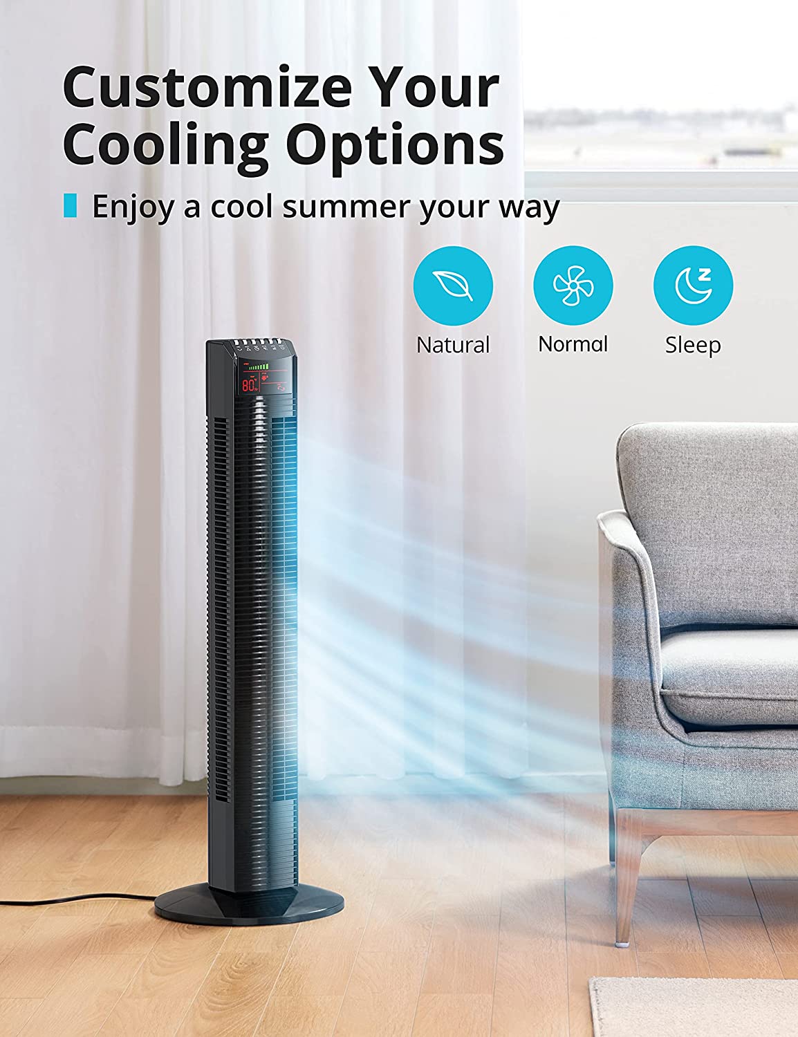 - Lower Noise, Better Sleep: This powerful yet silent tower fan brings comforting, cool breeze in an ultra-quiet way (only 45dB!); built-in timer can be set from 1 to 12 hours for a good night’s sleep or cool nap