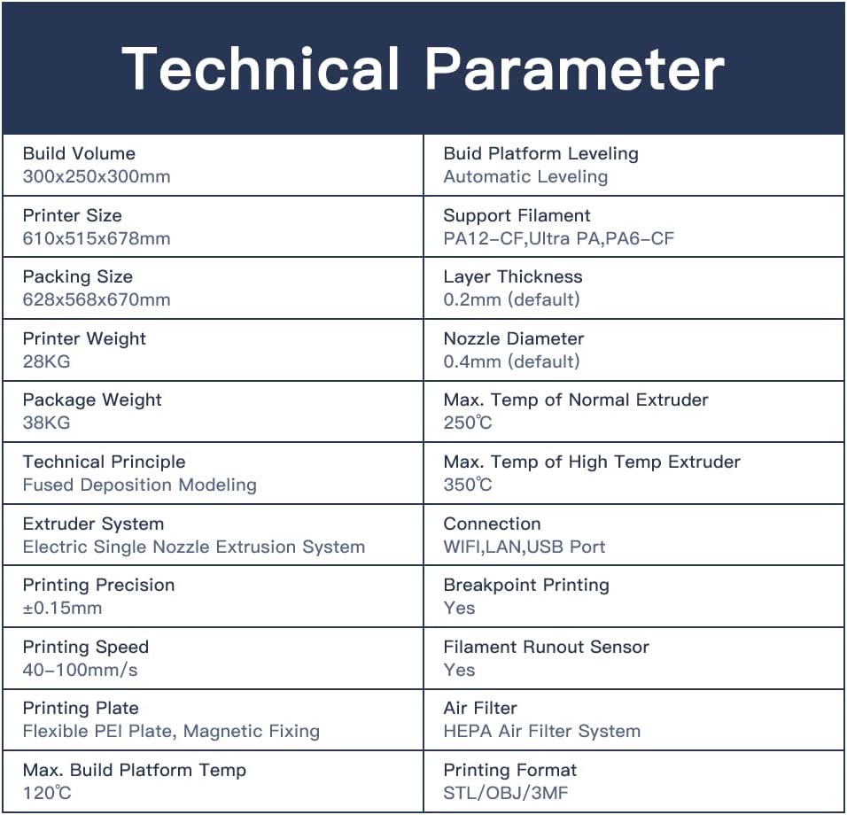 • 【Precision Manufacturing Process】QIDI TECH using industrial-grade manufacturing, dual z-axis and industrial guide, can achieve high precision, fast printing. Upgrading the XYZ structure, all use of industrial slides. PEI printing plate, solve printing models warp and other problems.The 3d printer’s structure is developed for the effective and accurate printing of carbon fiber.Meanwile, printing other common filaments, the speed can be increased to 120cc per hour.