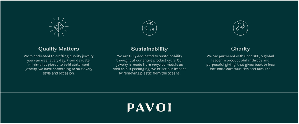 ✦ SUSTAINABILITY ✦ PAVOI is dedicated to sustainability throughout our entire product cycle. Our jewelry is made from 100% recycled materials and we package in 99% recycled and compostable materials. We work to reduce our carbon emissions and offset plastic consumption by removing 275,000 bottles from oceans annually. We are committed to maintain a balanced and eco-friendly business that minimizes our environmental impact. Trust that PAVOI is continuously working towards a greener future.