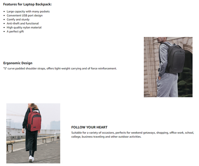 • CONVENIENT USB PORT DESIGN: With built in USB charger outside and built in charging cable inside, great convenience for charging your electronic items via connecting your own power bank, offers you a more convenient way to charge your phone while walking. Please note that this backpack doesn't power itself, usb charging port only offers an easy access to charge.