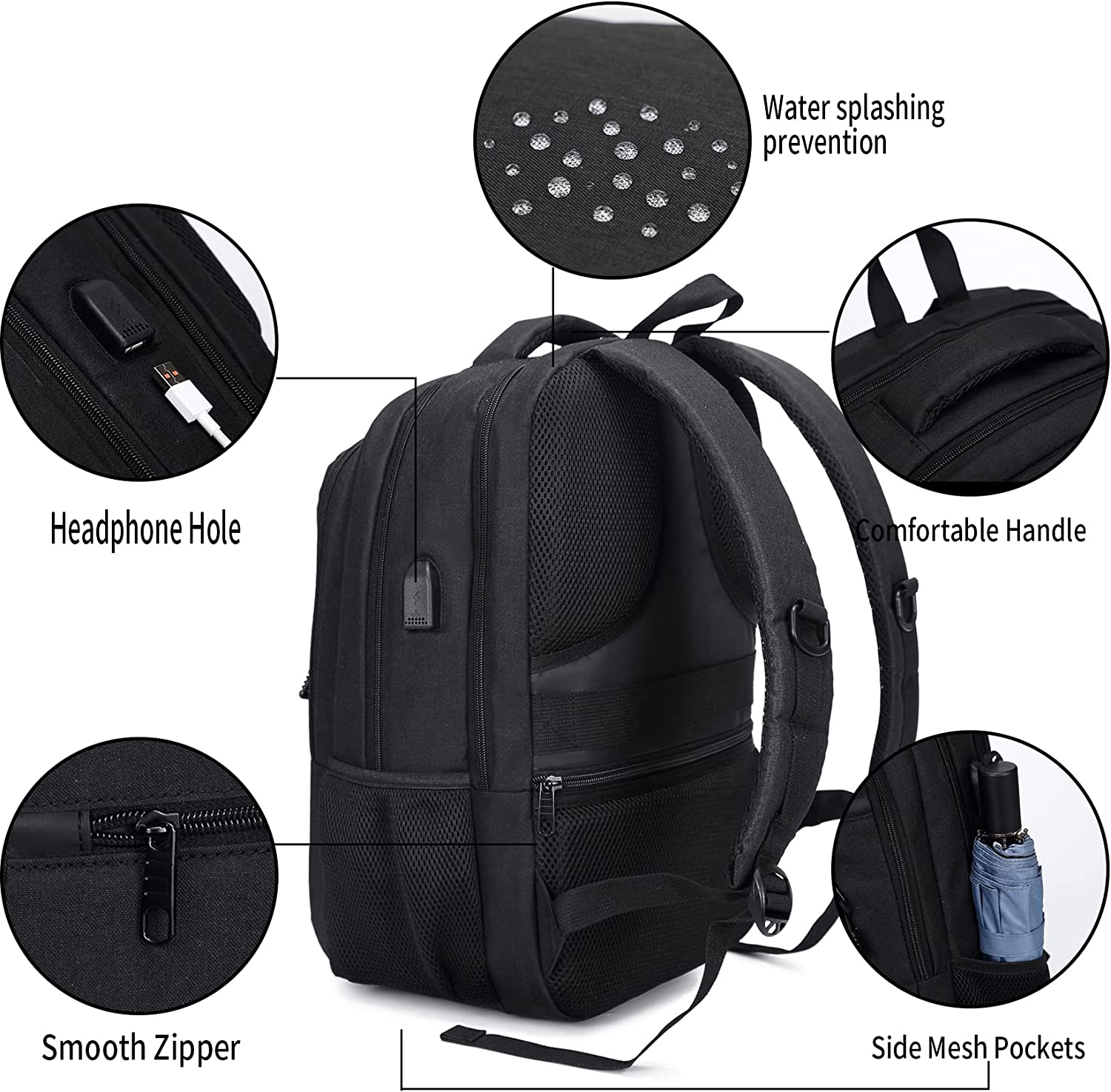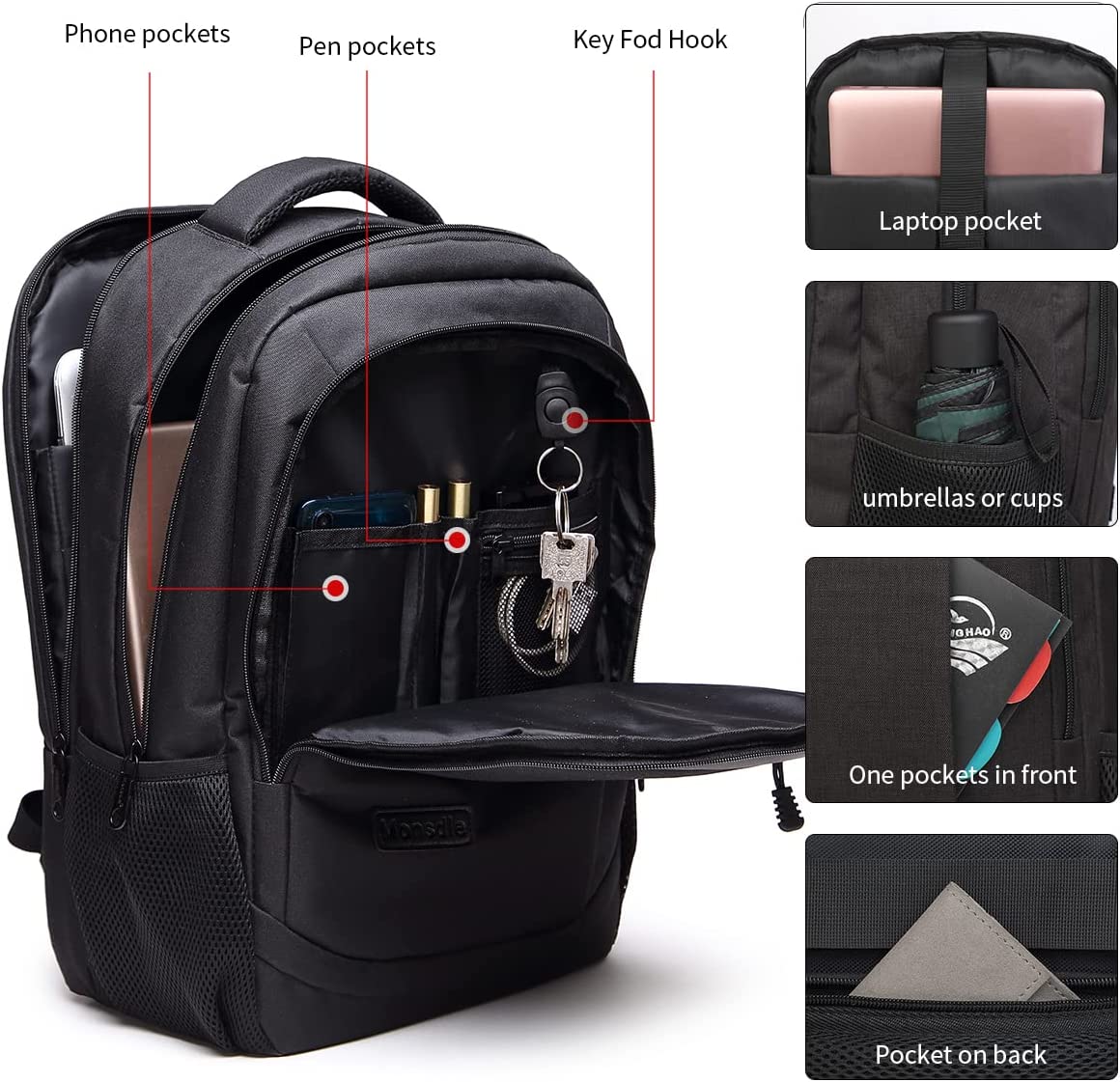 Monsdle Travel Laptop Backpack Anti Theft Water Resistant Backpacks School Computer Bookbag with USB Charging Port for Men Women College Students Fits 15.6 Inch Laptop (Black)