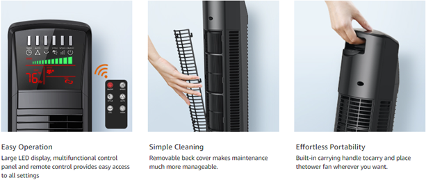- Customize Your Airflow Easily: Forget about the old-fashioned fans with the noisy blades and the standard rough airflow. The bladeless tower fan features 3 airflow modes - normal, natural, and sleep - so you can personalize the cooling effects according to your needs, plus 3 speed settings, varying from low to medium and high, to control the wind power and have the ultimate cooling experience during the hot days of summer.
