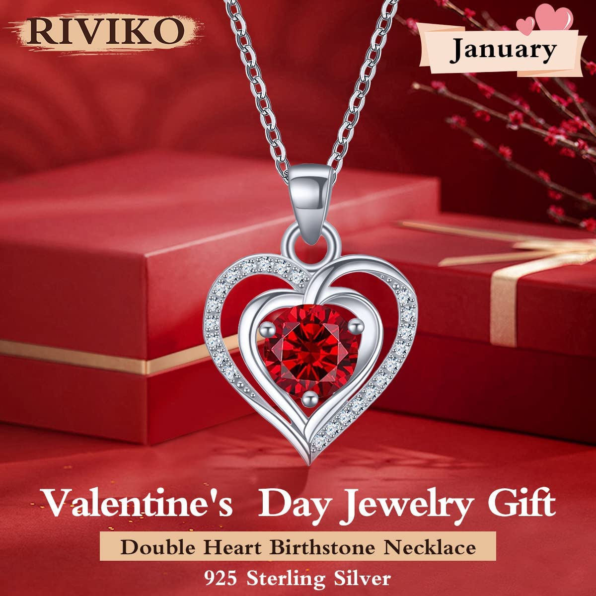 RIVIKO Heart Birthstone Pendant Necklace for Women 925 Sterling Silver Zirconia Necklaces Christmas Valentine's Mothers Day Jewelry Gifts For Girls Mother Wife