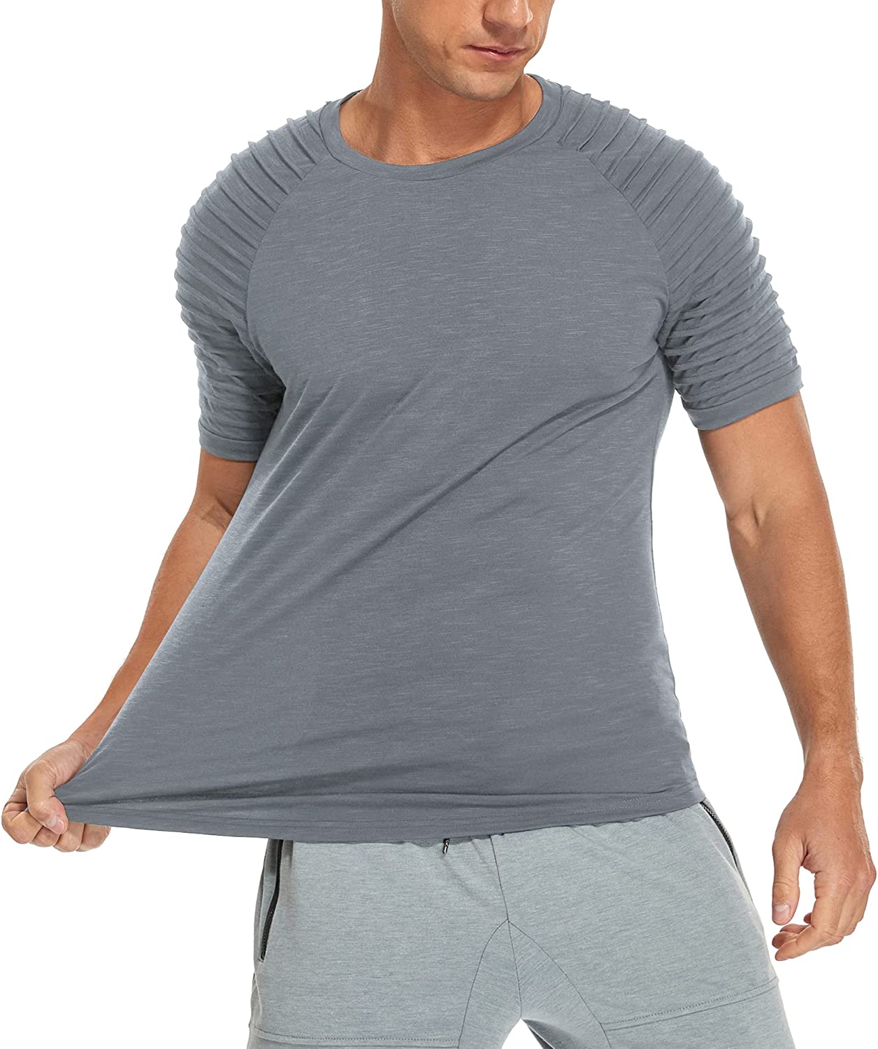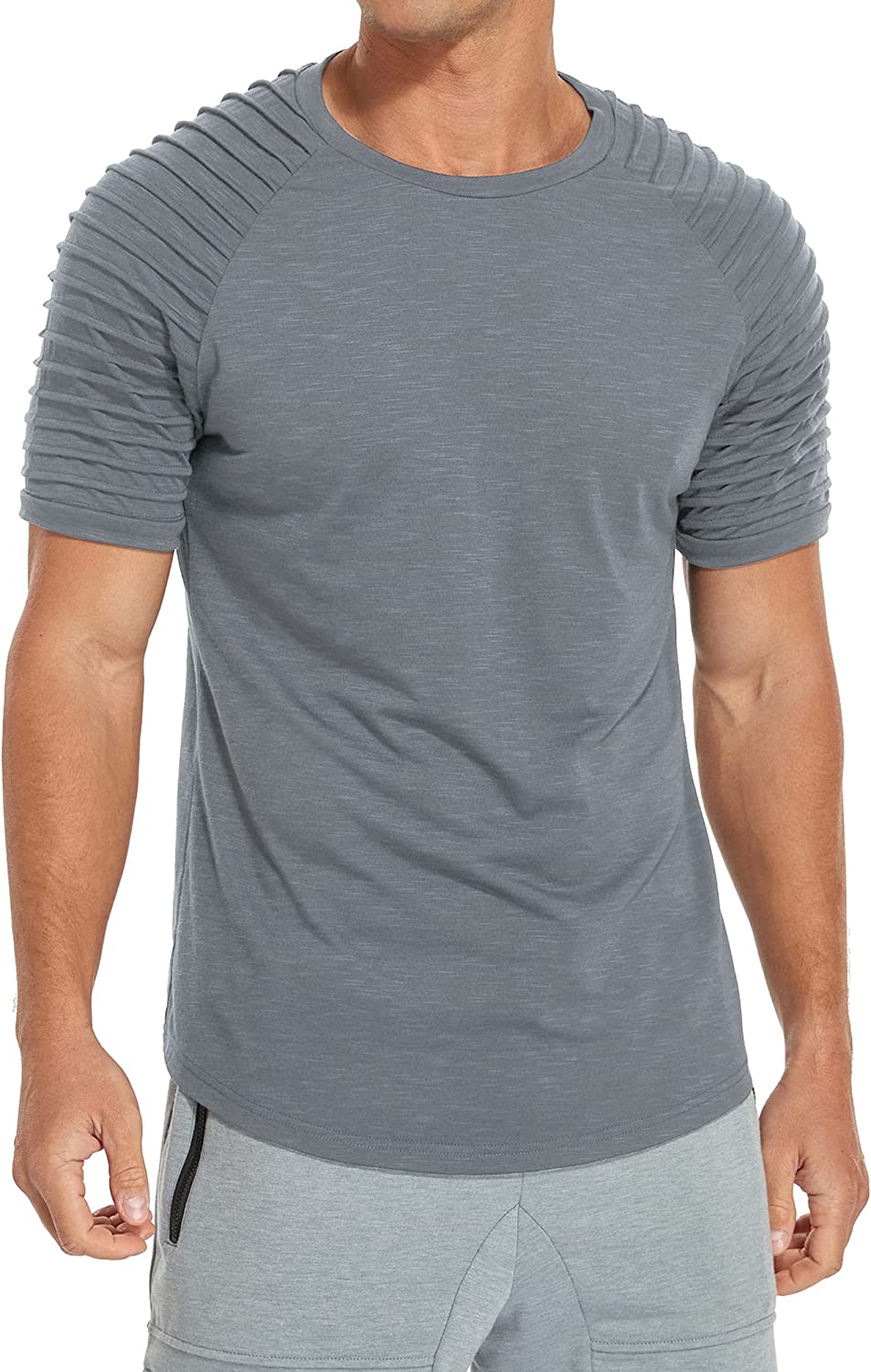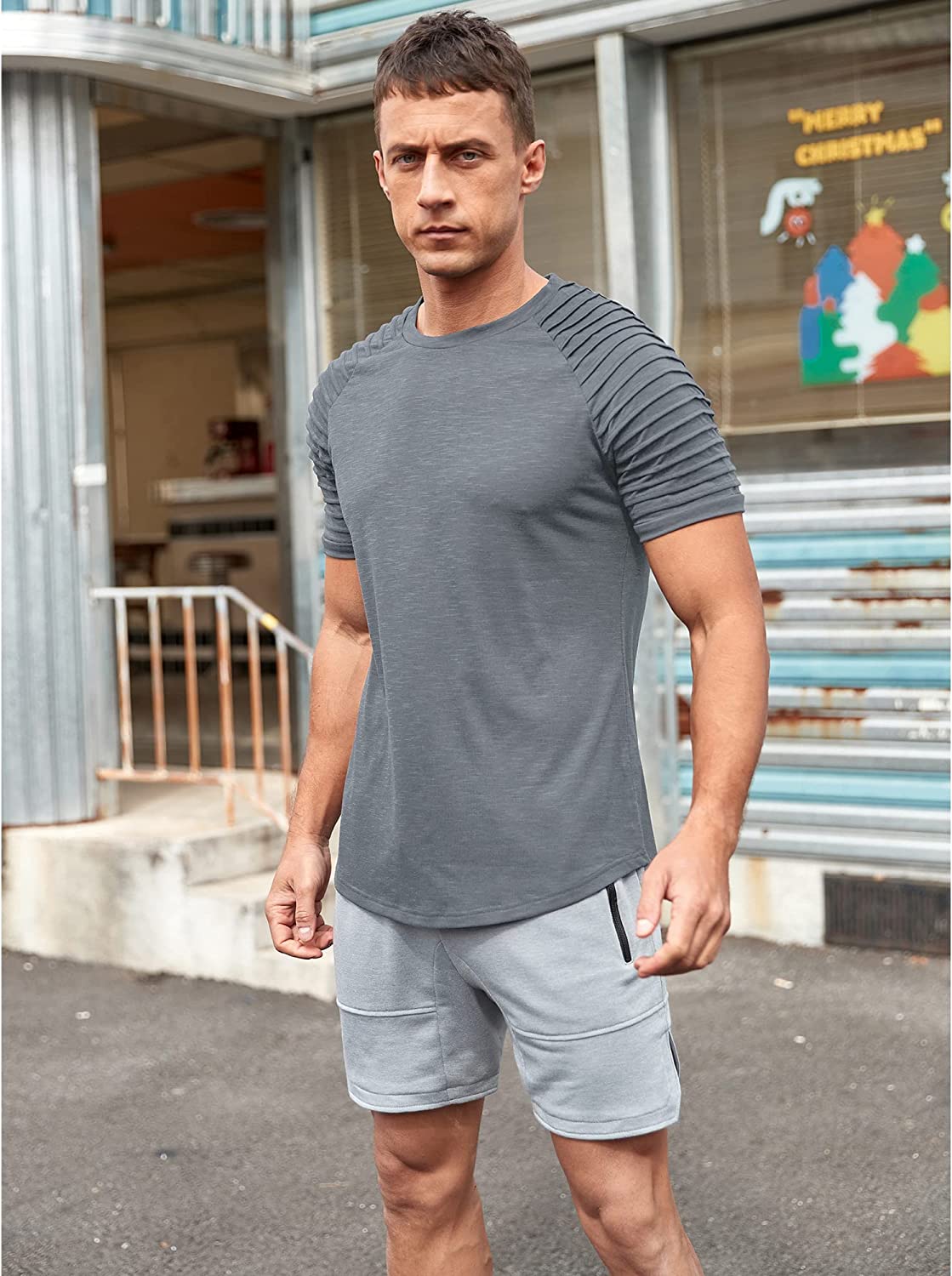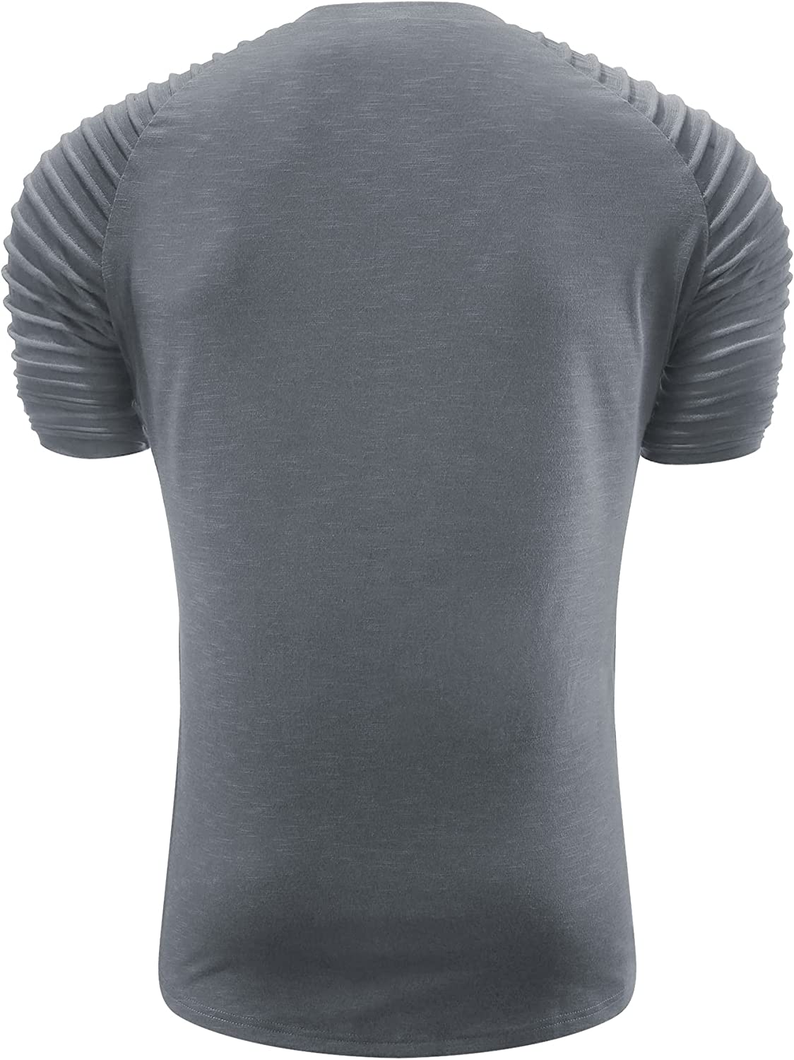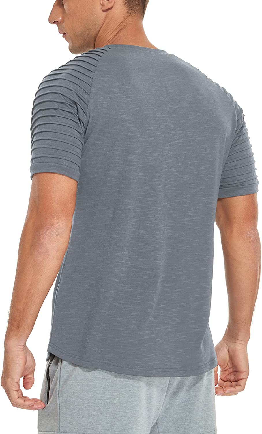 Men's Muscle Workout T-Shirt Pleated Raglan Short Sleeve Gym Athletic  Fashion Tee Top