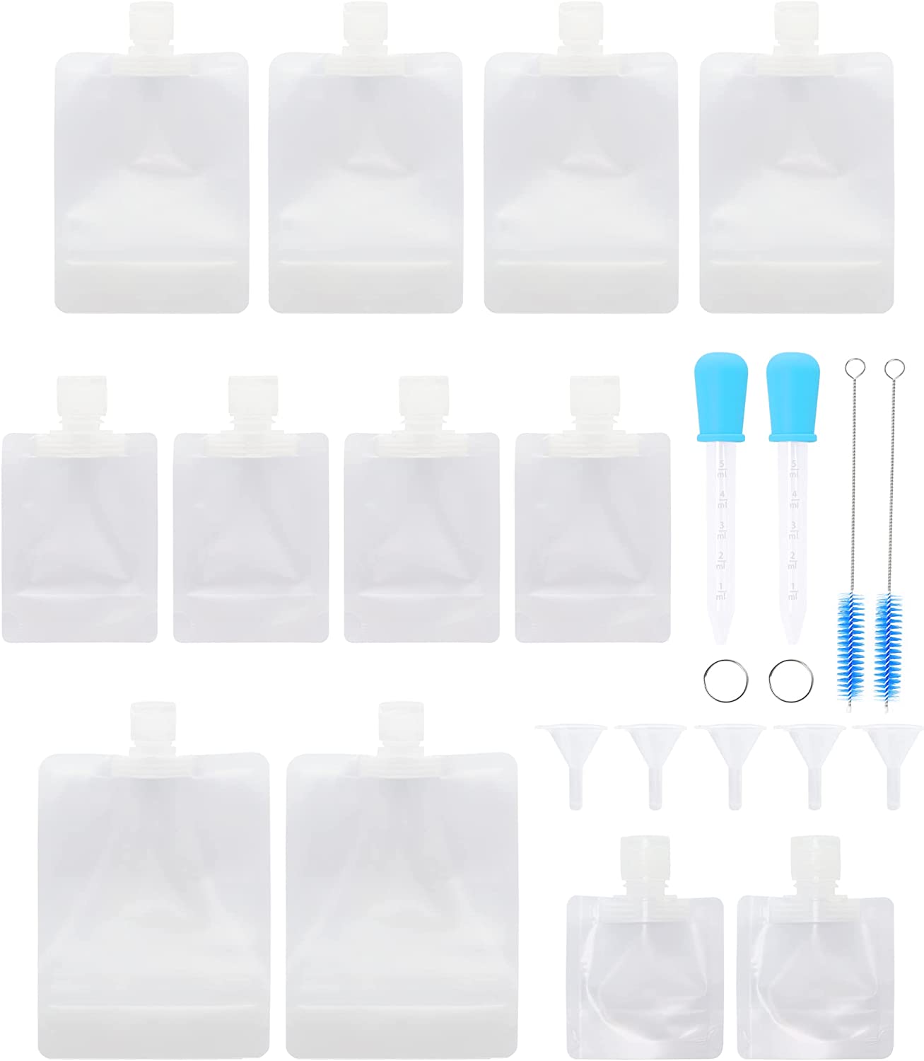 RIIEYOCA 12 Piece Portable Travel Liquid Clear Plastic Empty Packaging Bag, With funnel, dropper, brush, Used for shampoo/shower gel/hand sanitizer/daily necessities,etc.(Mixed suit)