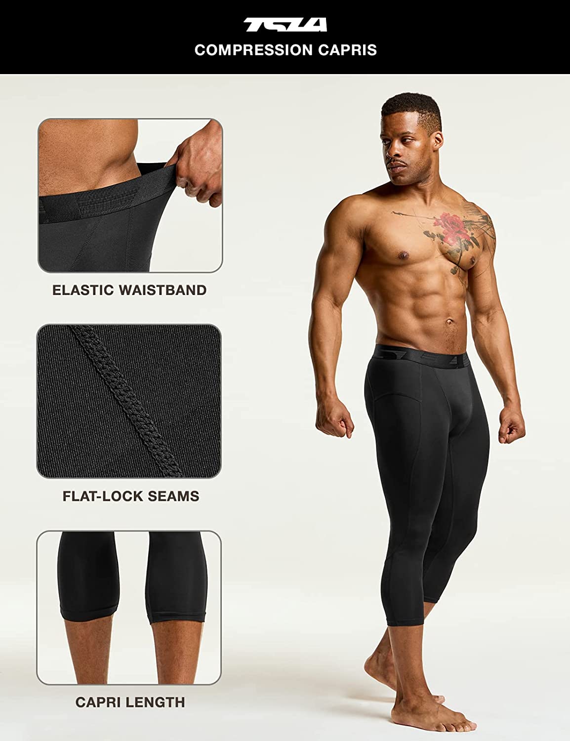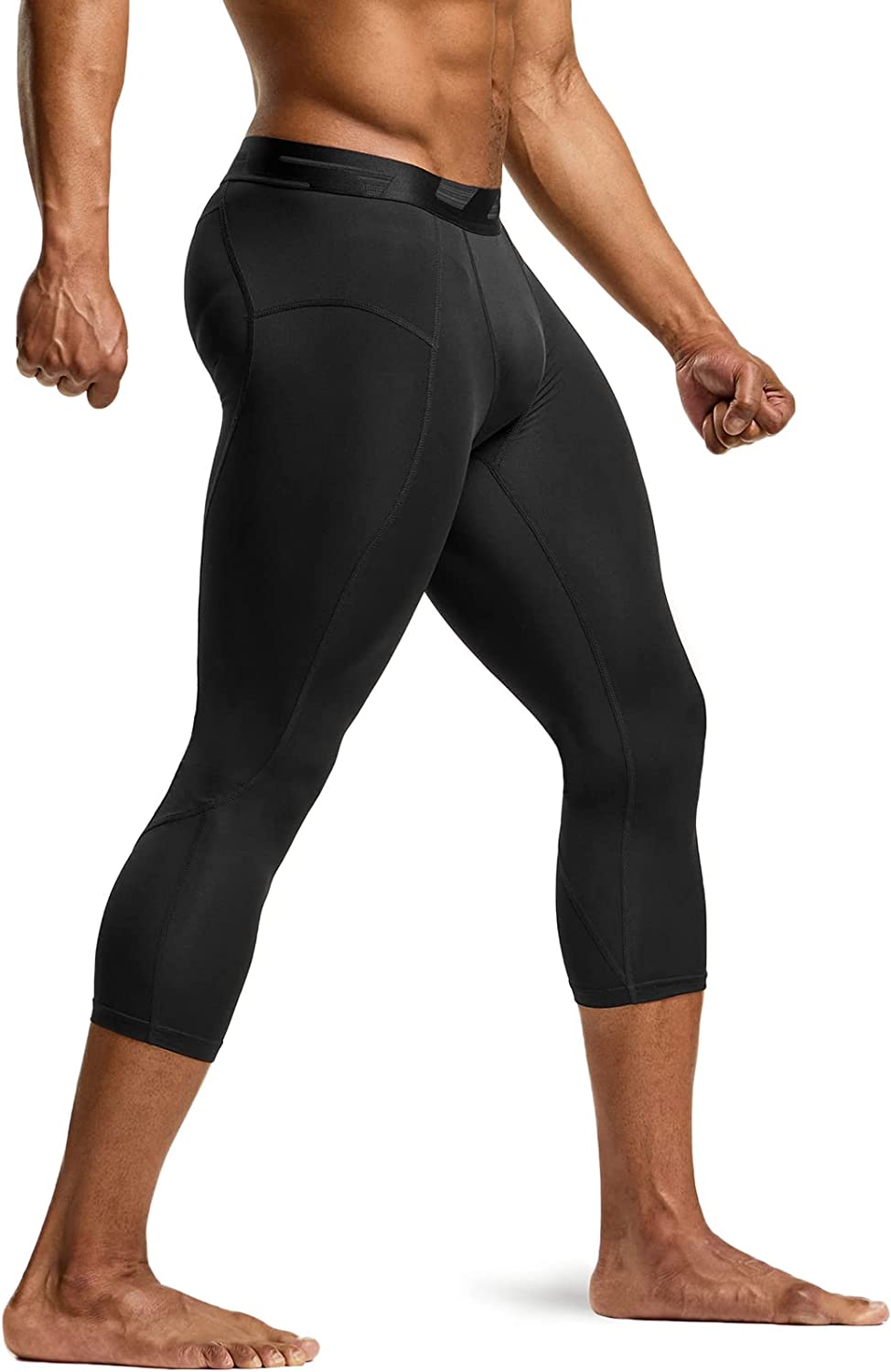 TSLA Men's 3/4 Compression Pants, Running Workout Tights, Cool Dry Capri Athletic Leggings, Yoga Gym Base Layer