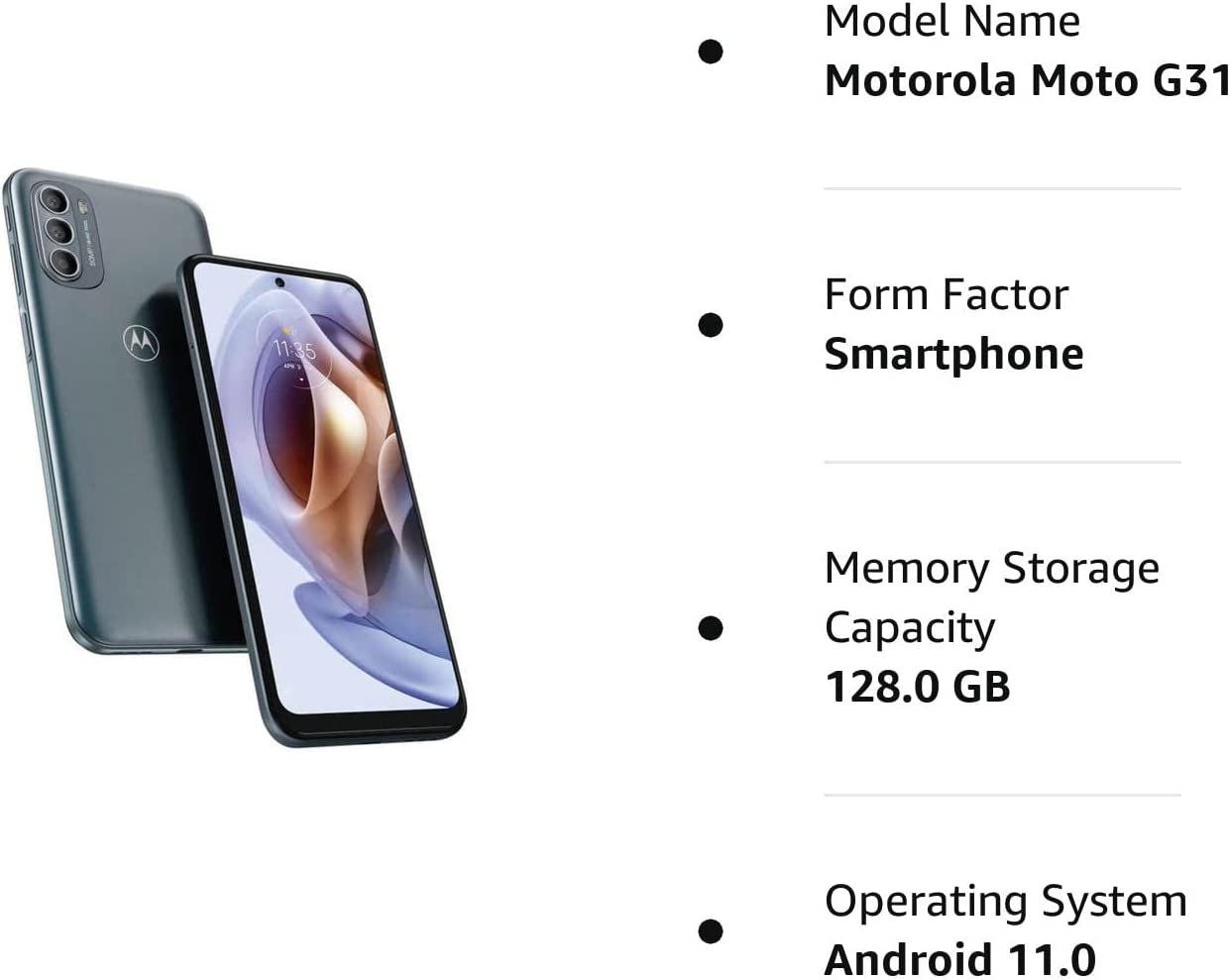 Motorola Moto G31 Dual-SIM 128GB ROM + 4GB RAM (GSM Only | No CDMA) Factory Unlocked 4G/LTE Smartphone (Mineral Grey) - International Version
