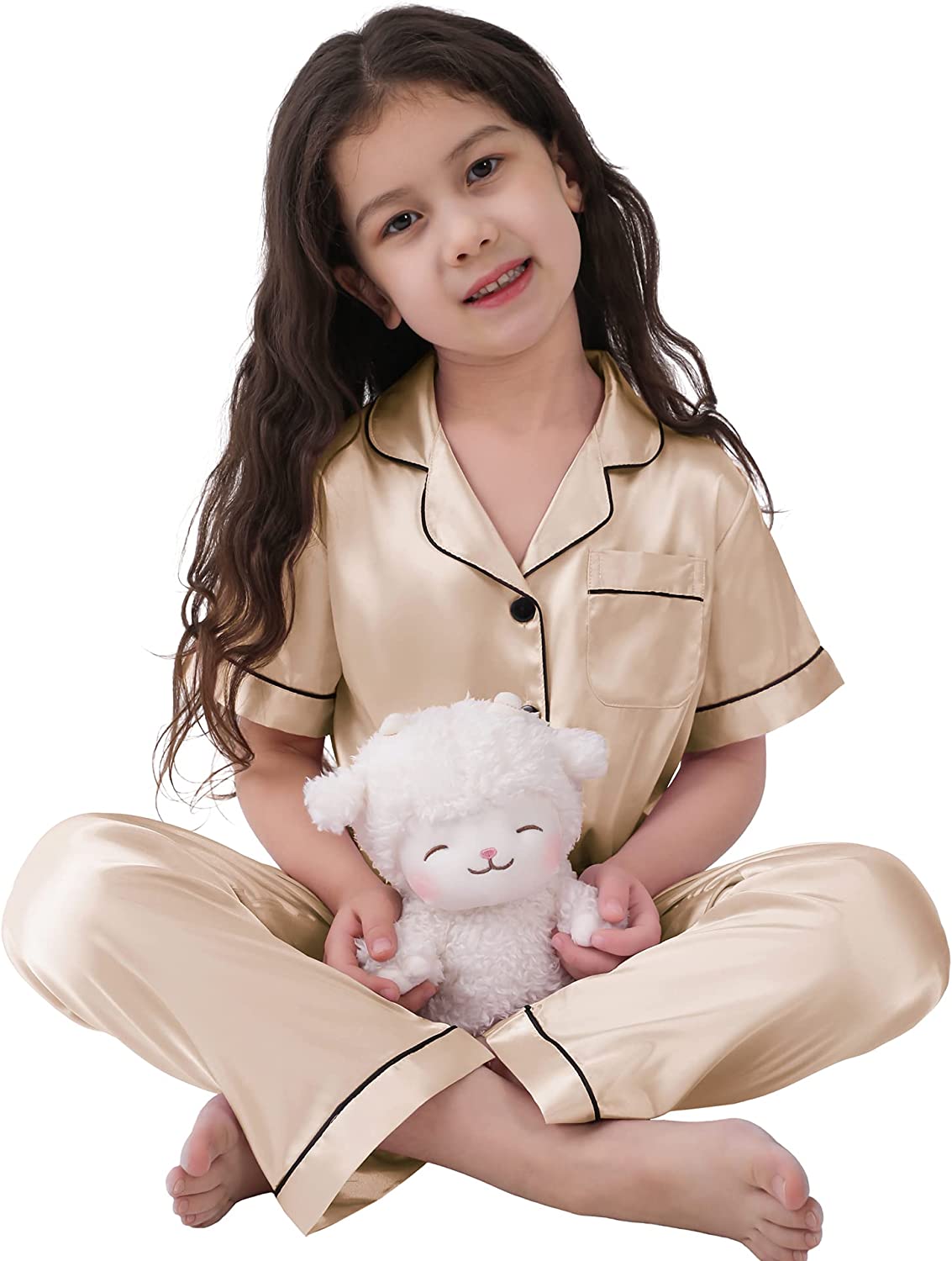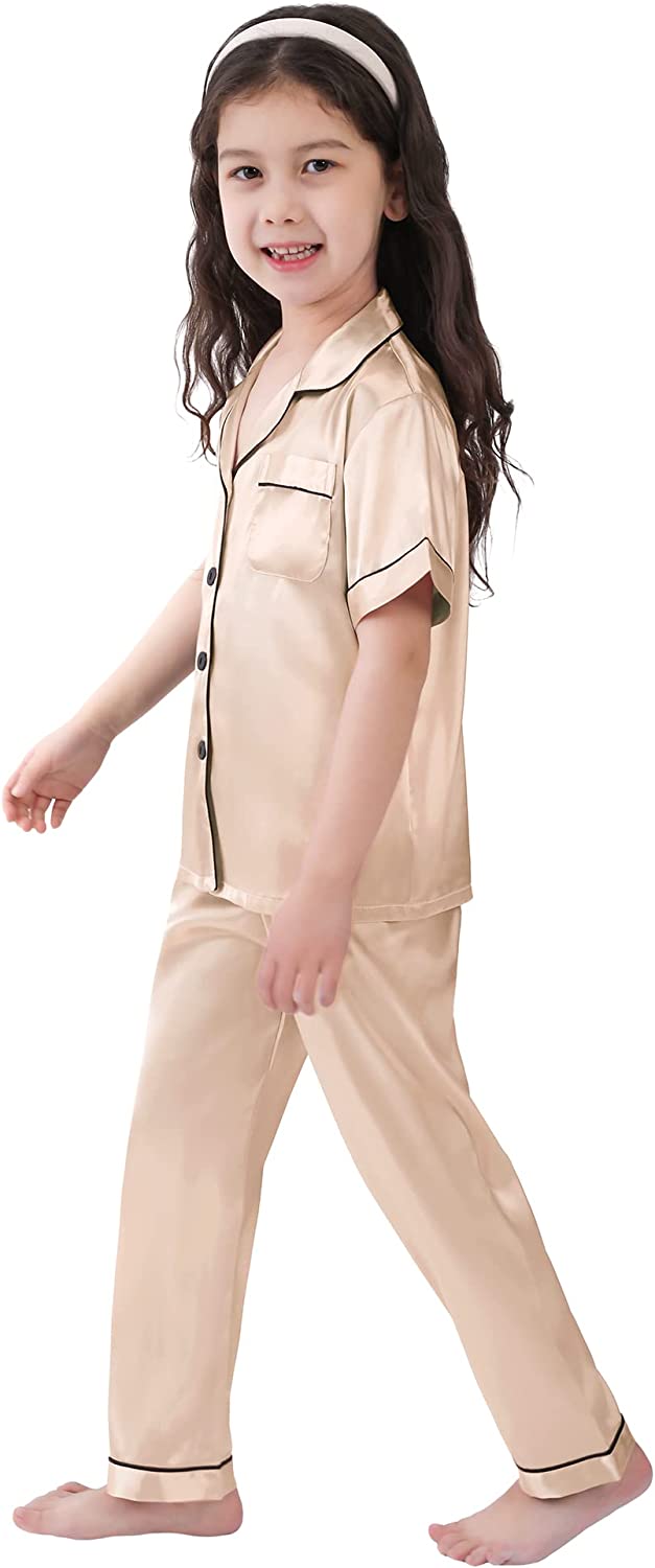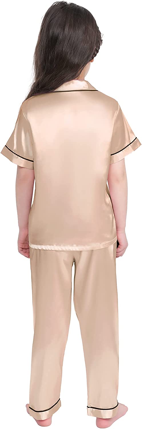 SWOMOG Kids Satin Pajamas Sets Girls Boys Button-Down Pjs Short Sleeve Silk Nightwear 2 Piece Lounge Sets
