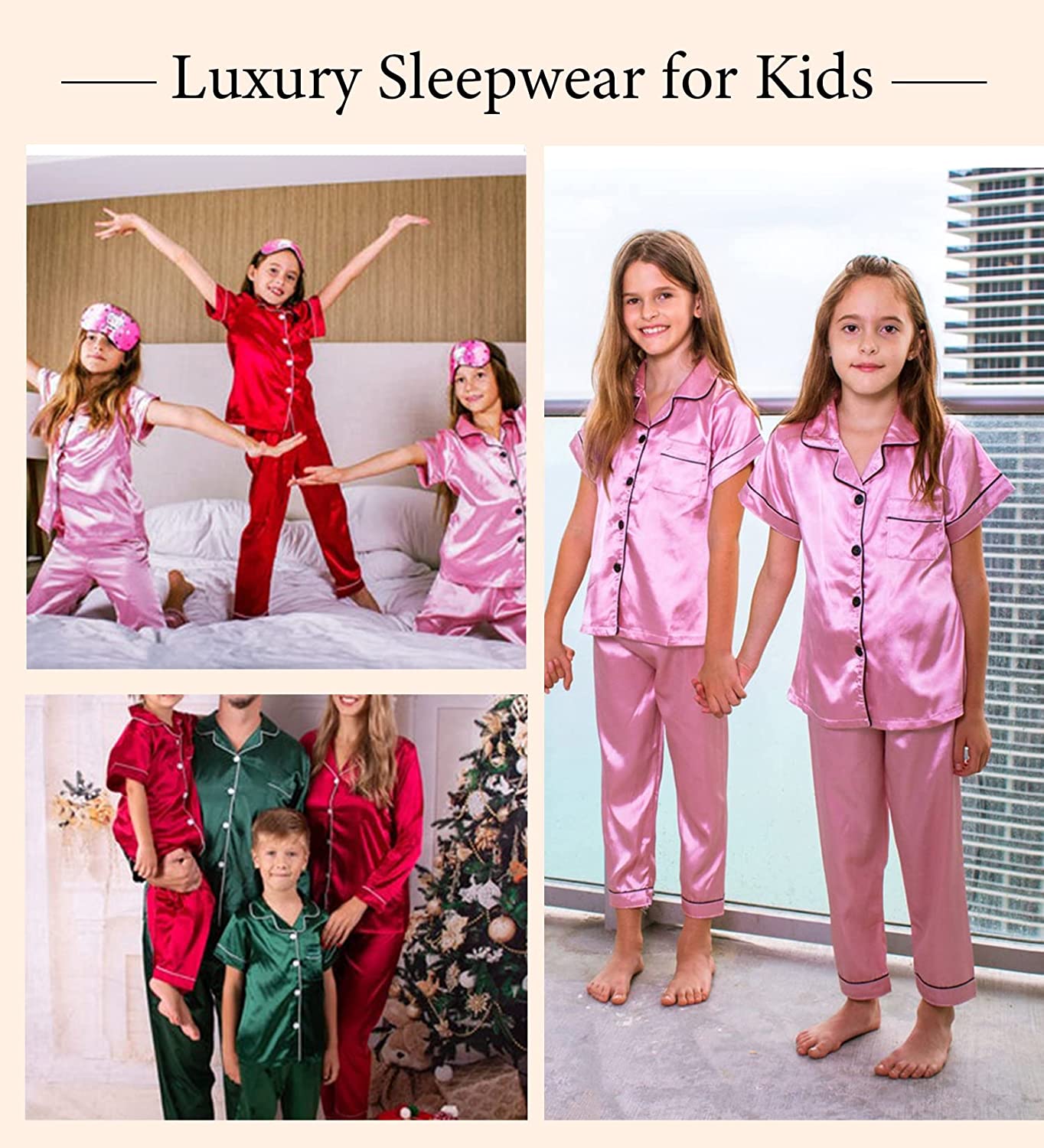 • Present - The children satin sleepwear sets is perfect for sleeping, bathing and lounging indoor and outdoor. Great presents for daughter, son, granddaughter, grandson, close friends, ect as birthday gift other present.