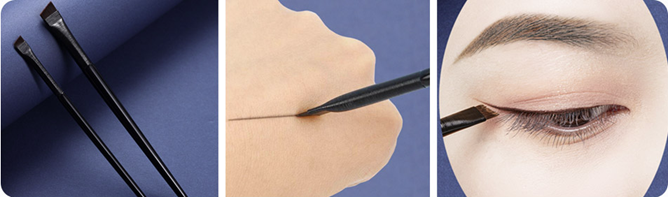 • Eyeliner Brush Features Unique Angled Brush Hair Tip Made With Premium Hair Excellent Angle For Clean Sharp Eyeliner Edges Easy To Use Designed with precision in mind for flawless cat eyes, expert winged tips and beautiful glitter liner. Define your eyeliner shapes with our unique eyeliner brush, with easy hold handles these brushes with help you create stunning eyeliner.
