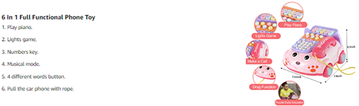 ☎【A combination of phone music toys】: kids cell phone girl analog phone toys with integrated lights and sounds. Baby phone toy has 31 buttons, including musical instruments, music, lullabies, numbers, piano, and games, which can increase children's interest in music and enhance the hand-eye coordination of young children, children can easily drag the baby toy phone cartoon machine to anywhere by dragging the tow rope.
