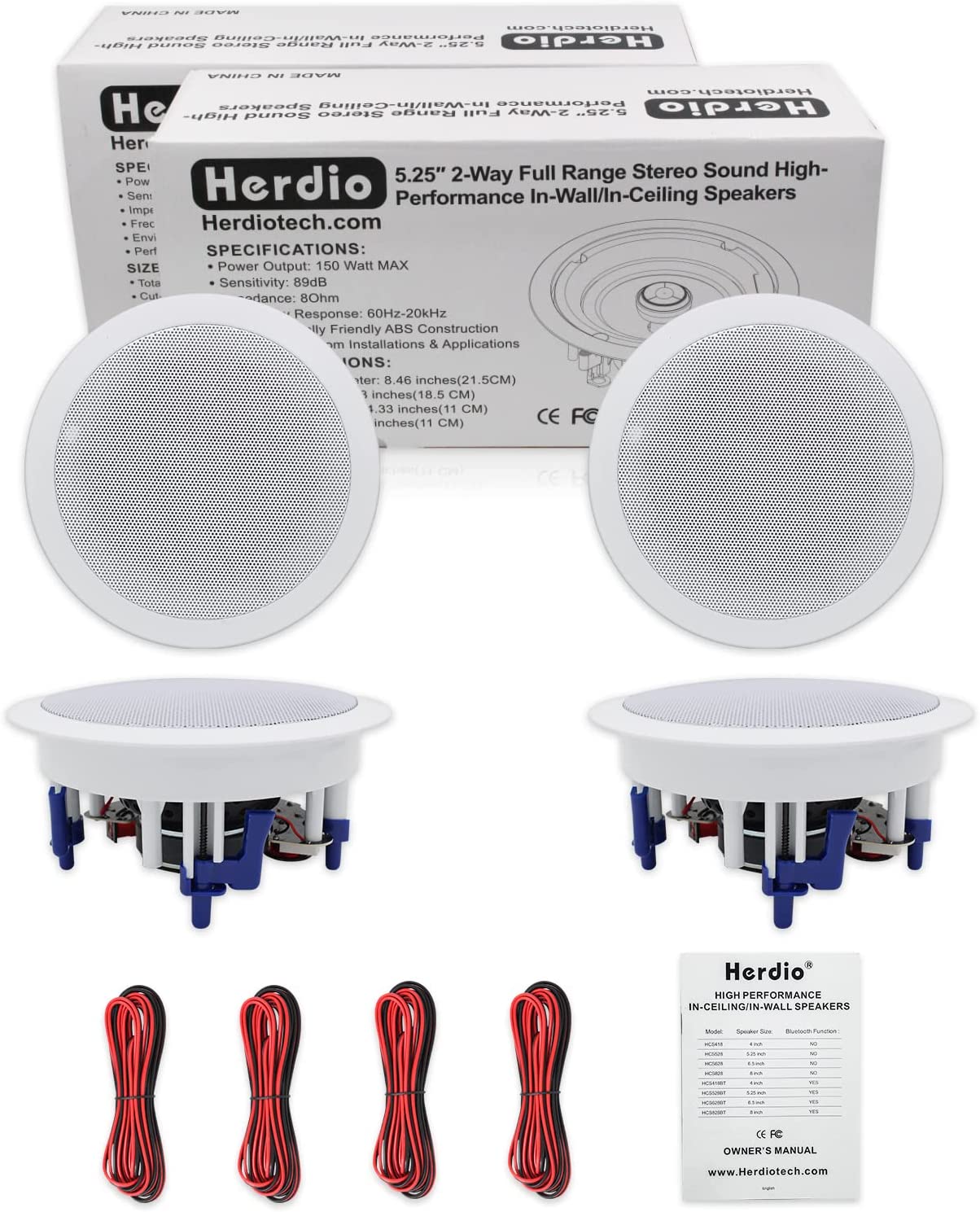 【What Is in The Box & Service】5.25" in Ceiling Speakers x4 , Speakers Connection Wires x4. Herdio backs the HCBS4-528 speakers with a 1-year warranty. Please contact us any time if there has any question in using, we'll provide help within 24 hours