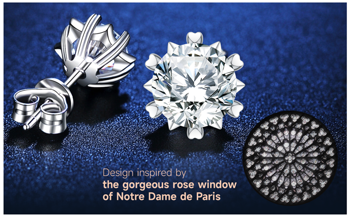 • THE BEAUTIFUL MYSTERY OF THE DIAMOND: The design is inspired by the gorgeous rose window of Notre Dame de Paris, the extreme cut creates a perfect symmetrical facet, creating an unprecedented extreme sparkle with the strict cutting requirements, and the fire reaches the highest grade-EX, which can be seen from any angle of brilliance. The sparkle is the highest grade of fire (EX) and can be seen from any angle.