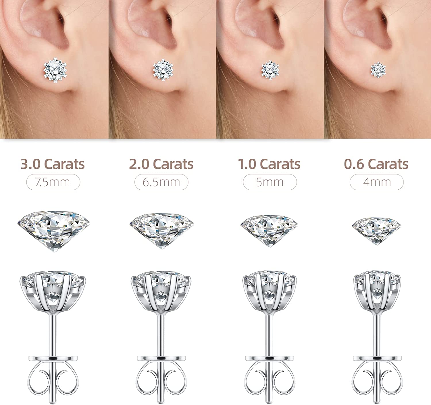 • INNOVATIVE TECHNOLOGY: Each diamond is cut using exceptional cutting techniques, and only a perfectly mathematically proportioned cut can reflect extremely bright light. It took many experiments and explorations to ensure the perfect symmetry of the diamond's cut. Sterling silver Well made mountings with secure backs, shiny and hypoallergenic.