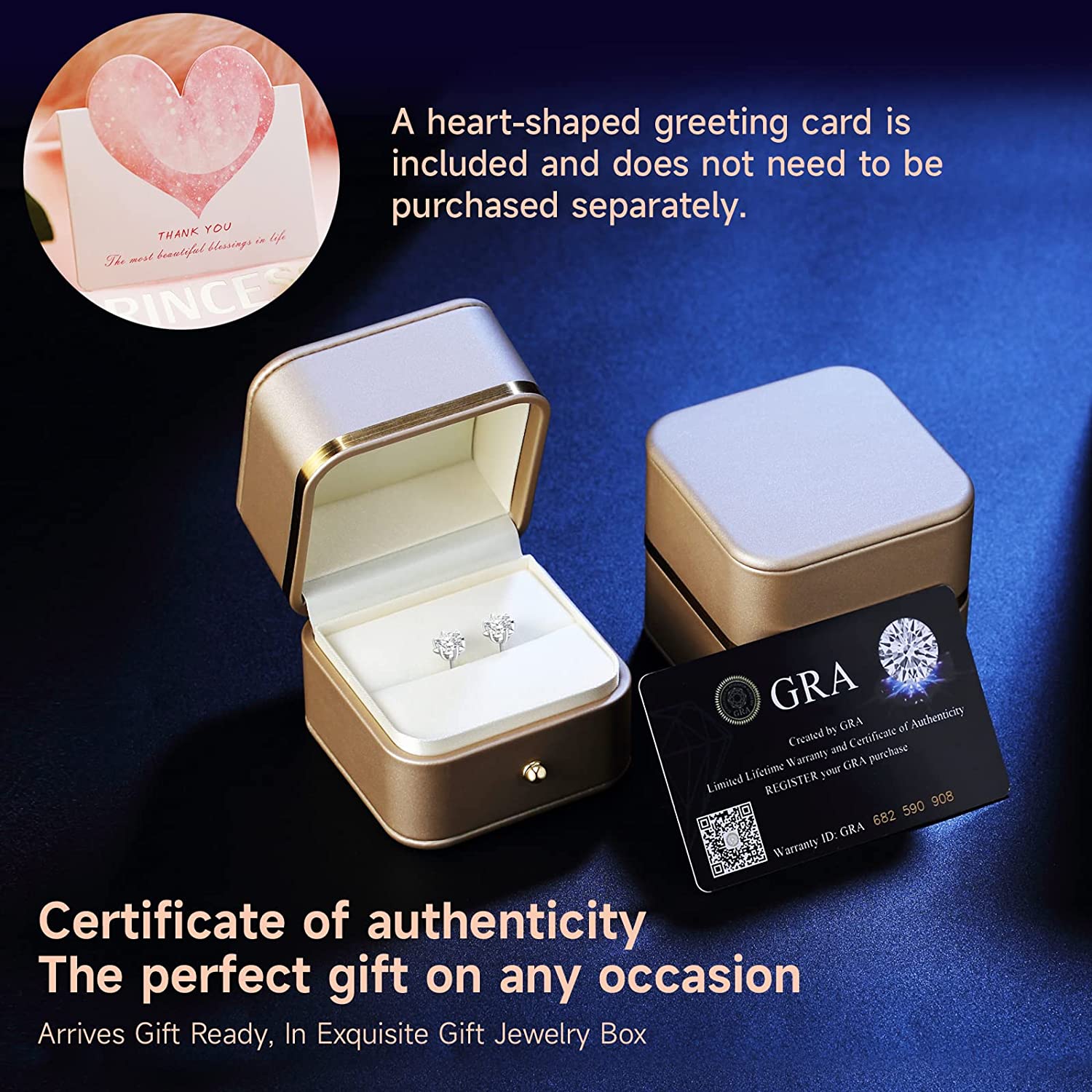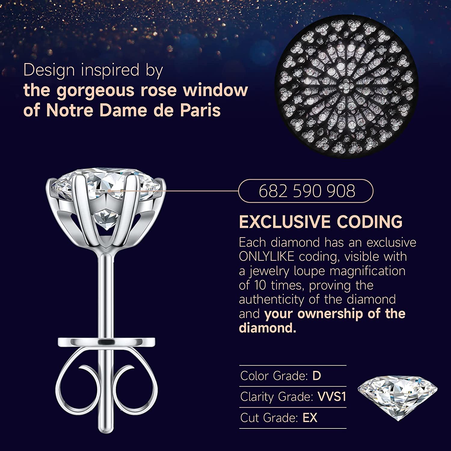 • STUNNING DIAMOND STUD EARRINGS: These beautiful diamond earrings are placed in a 6- Hearts prong setting for a sturdy and balanced look. 6 Hearts Represent Love, Promise, Responsibility, Trust, Cherishing, Happiness. A moissanite diamond never loses its brilliance and fire. moissanite diamond is almost indistinguishable from a natural diamond, except of course the price! which is an eternal jewel at an affordable price.