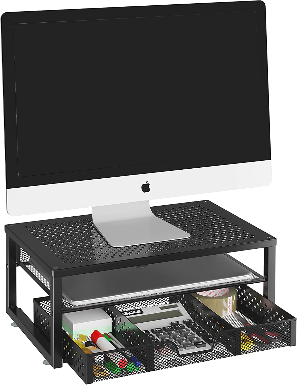 Simple Trending-Metal Monitor Stand Riser and Computer Desk Organizer with Drawer for Laptop, Computer, iMac, Black