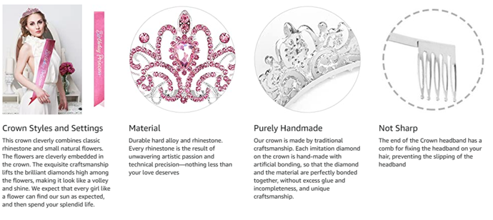 • ❤️Material: durable cemented carbide and rhinestones. The alloy has a diamond appearance and a hard texture, which is both practical and beautiful. The weight of the product is less than 100 grams, and there is no sense of weight on the head after wearing the crown.