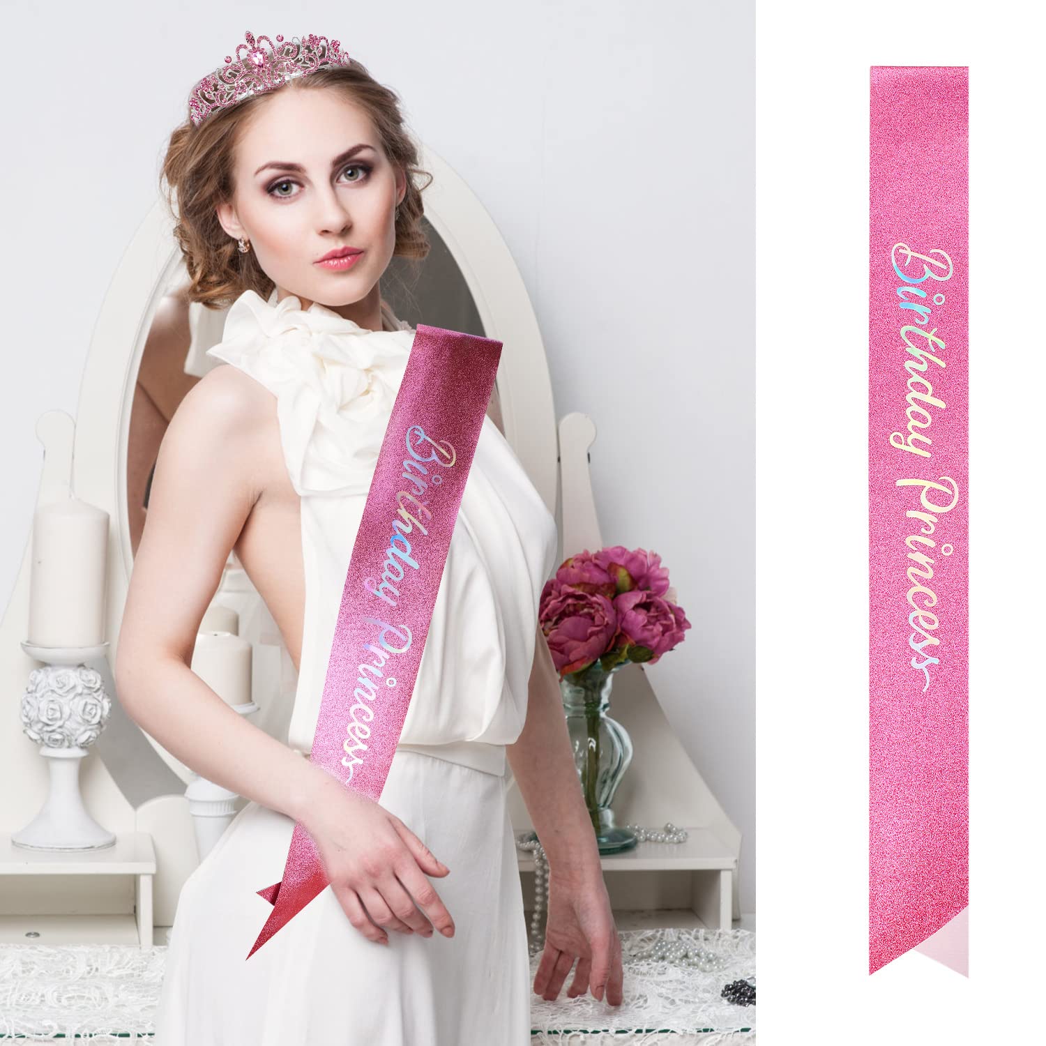 VELSCRUN Birthday Tiaras for Women, Princess Crown Tiara, Happy Birthday Crowns for Women, Birthday Crown for Girls Birthday Sash, Happy Birthday Decorations for Women, Birthday Accessories