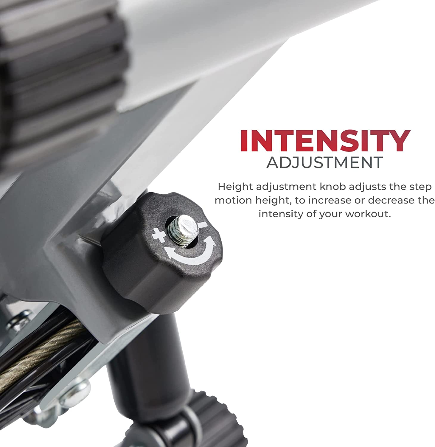 • HEIGHT ADJUSTMENT: Height adjustment knob adjusts the step motion height for either short bursts or long steps.